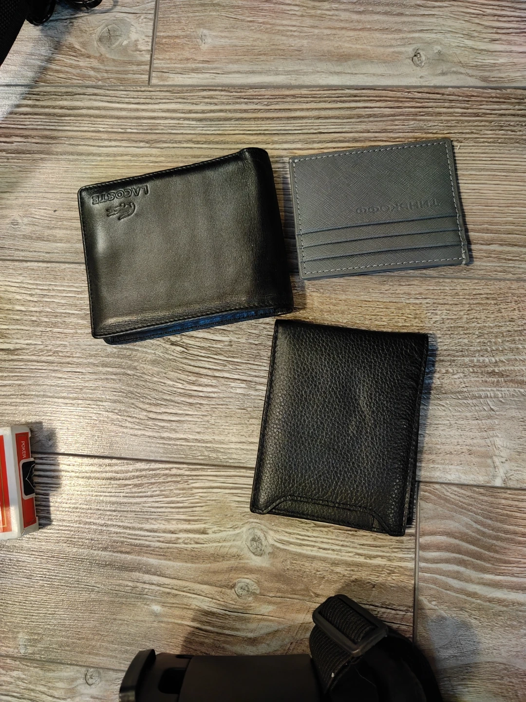 Selling a Lacoste black leather wallet. It's in great shape and has plenty of slots for cards and cash. The classic Lacoste logo is subtly placed on the front. Perfect for everyday use! Plus 2 more wallets!