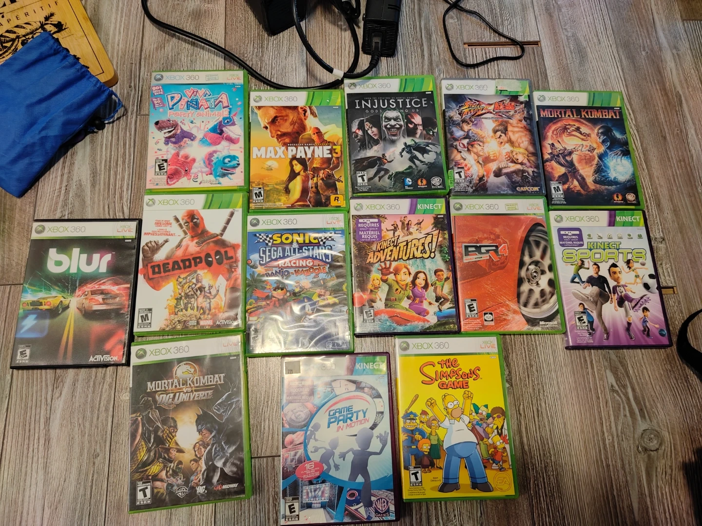 Selling an Xbox 360 console, Kinect sensor, and a selection of games. Includes the power adapter and everything you need to get started. Great for some retro gaming fun!