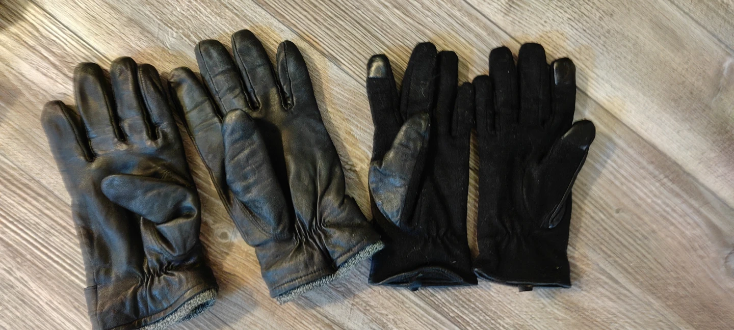 Womens and mens black leather gloves. There are a variety of styles and materials, perfect for keeping your hands warm and stylish during the colder months!