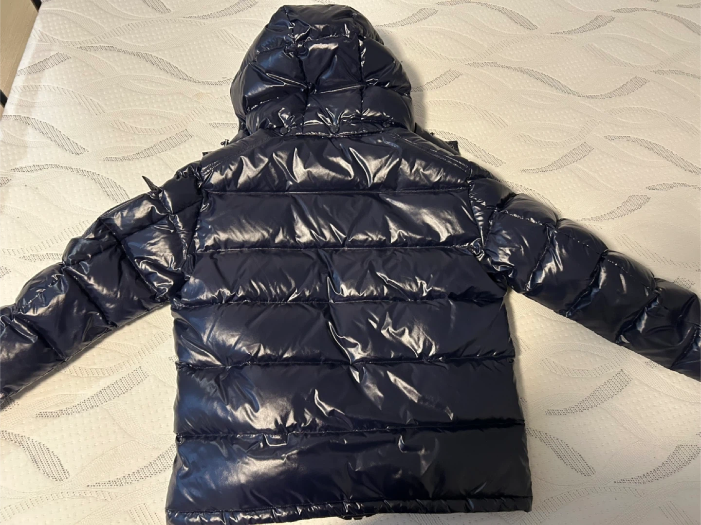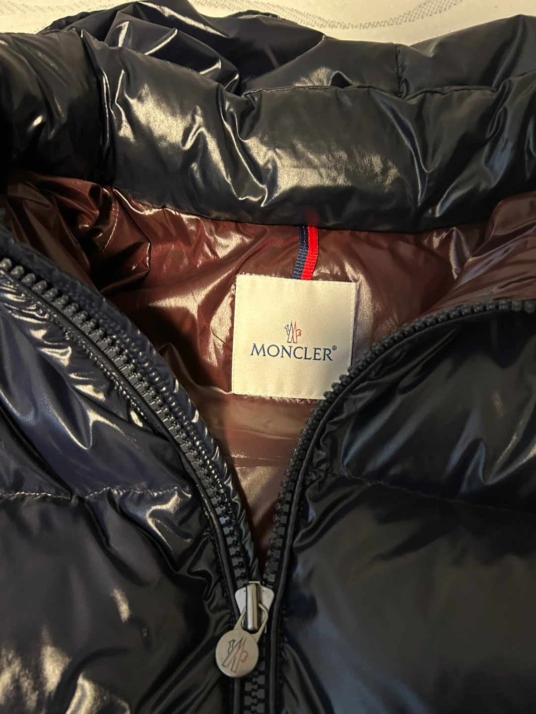 a Moncler puffer jacket! It's a stylish and warm choice for those chilly days. The jacket features the iconic Moncler logo on the sleeve pocket. Brand new never worn.