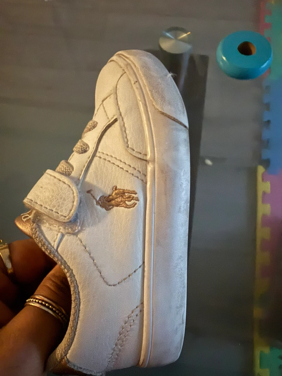 I'm selling a pair of Polo Ralph Lauren, timberland toddler shoes. They are in good condition and ready for a new owner! The shoes are white and feature the Polo logo.