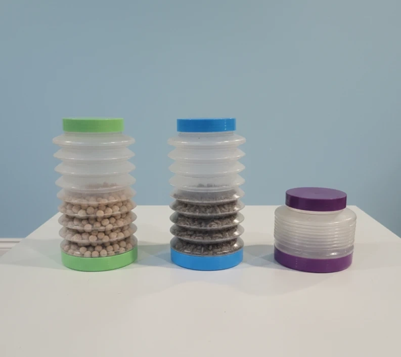 Here are some cute vintage expandable candy dispensers! They're perfect for storing small candies or other treats. Available in blue, green, and purple.