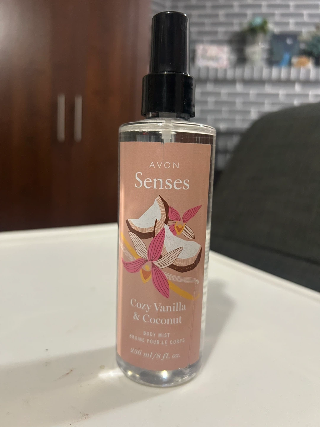 Treat yourself to a cloud of cozy vanilla, creamy coconut, and calming chamomile with this Avon Senses body mist! It's dermatologist-tested and hypoallergenic, perfect for all-over body use. The bottle contains 236 ml / 8 fl oz