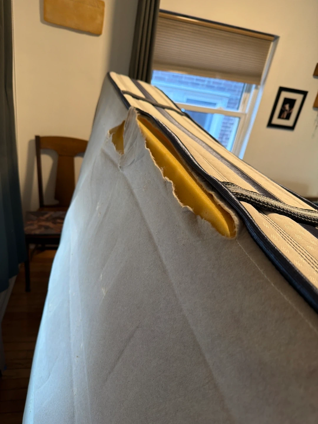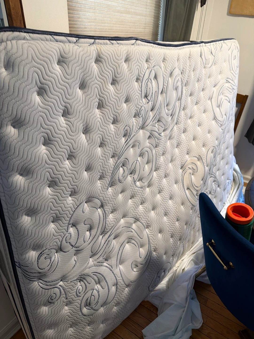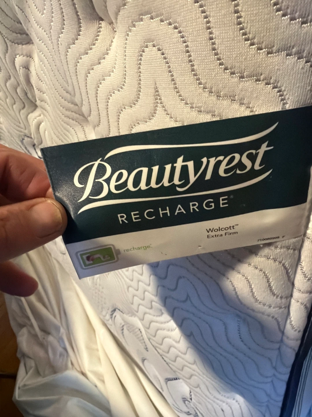 Selling a Beautyrest Recharge Wolcott Extra Firm mattress. There is some visible wear and tear, including a tear on the side. Comes from the clean home. No smoke or pets. Need light cleaning but otherwise if you need firm mattress this one is ideal. Please see photos for details