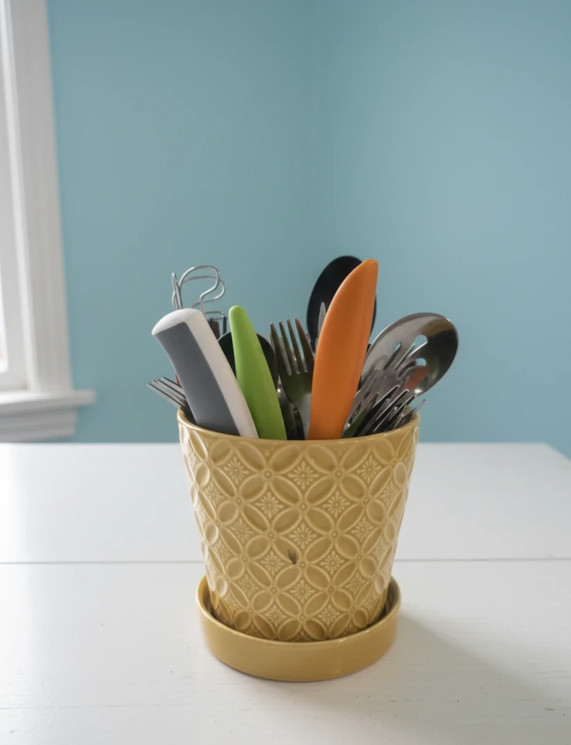 Yellow Ceramic Utensil Holder/ ceramic flower pot