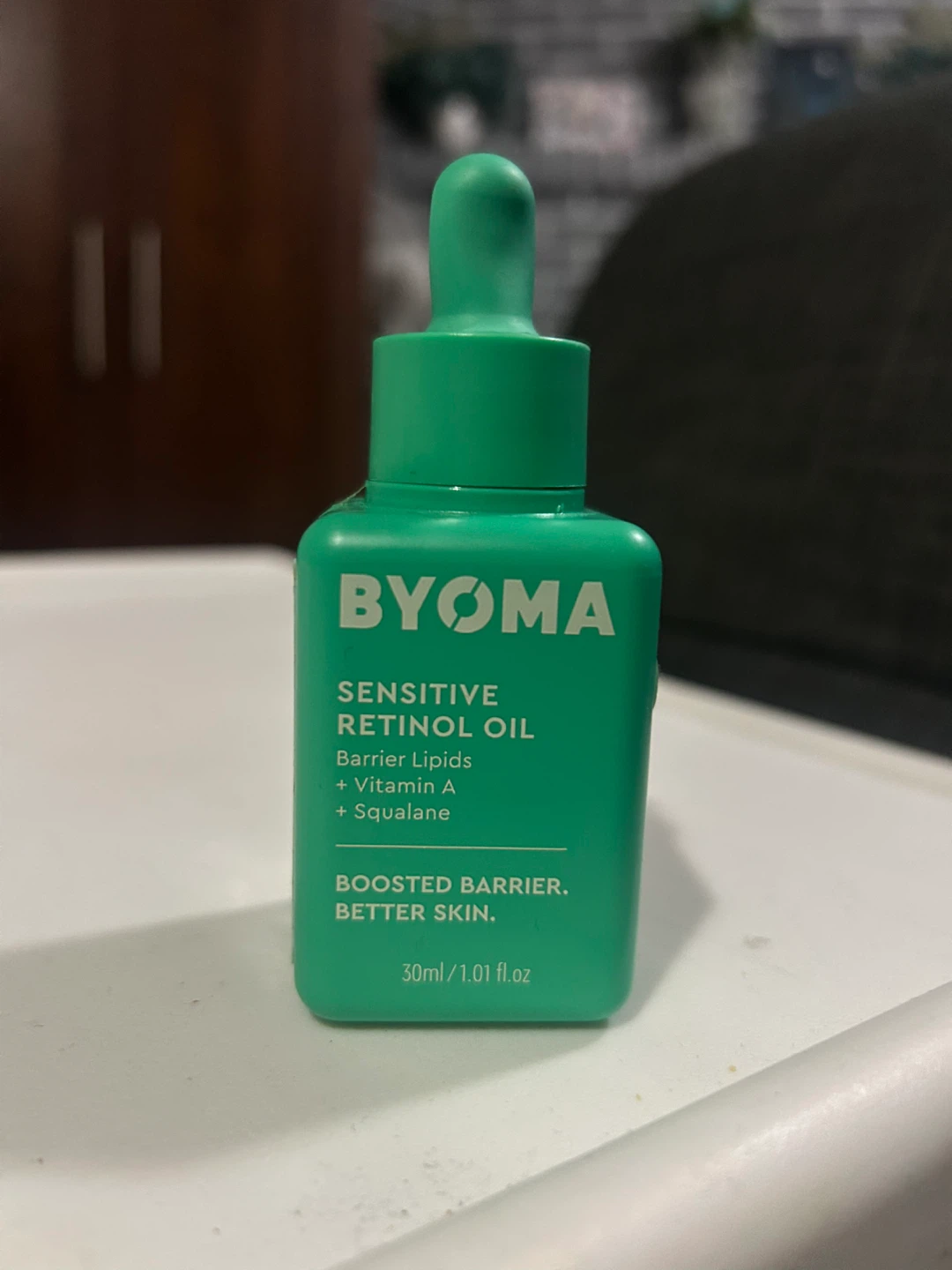 Selling a lightly used BYOMA Sensitive Retinol Oil. I only used it once and its not for me. This soothing retinol with barrier lipids, microalgae, retinoid, and squalane is ideal for first-time users or sensitive skin. It improves the appearance of fine lines, blemishes, pores, and uneven tone and texture while strengthening the skin barrier. Size is 30ml/1.01 fl oz