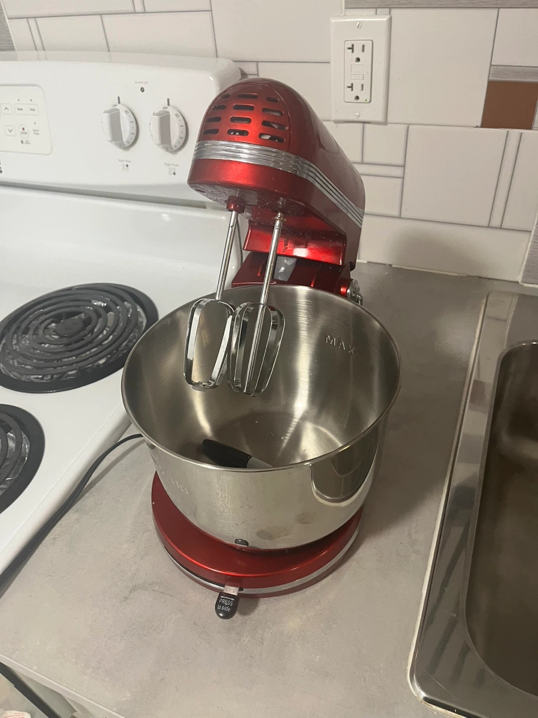 Selling a red stand mixer. It's in great condition and ready to help with all your baking needs! It features a stainless steel bowl and multiple speed settings for various mixing tasks