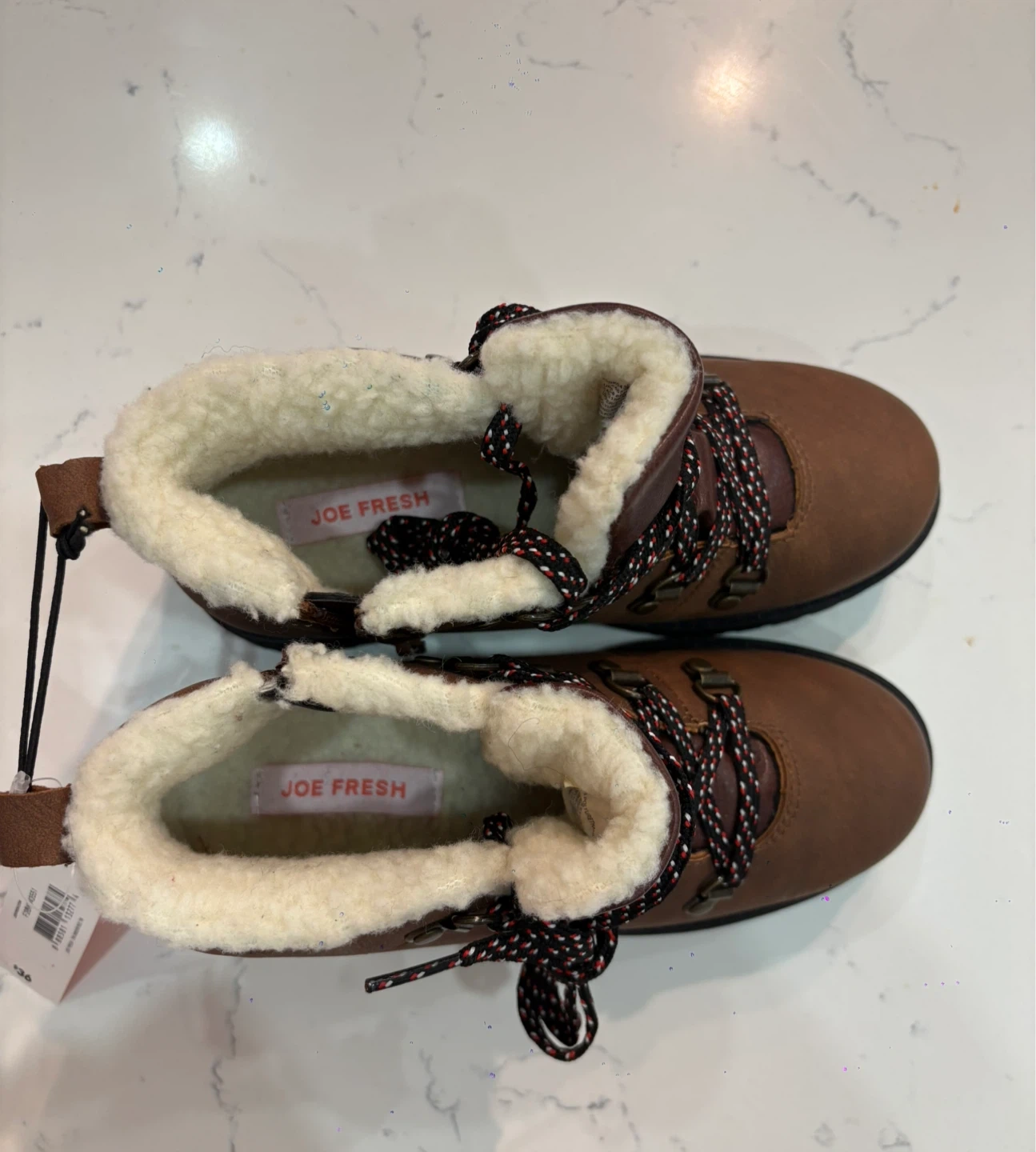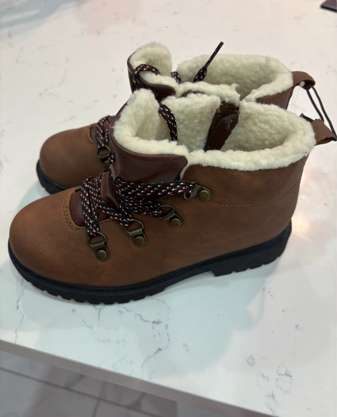 These Joe Fresh kids' winter boots are brand new with tags! They are a brown colour with a cozy faux-fur lining. Perfect for keeping little feet warm and dry this winter. Size 1 (kids). Originally bought for $36