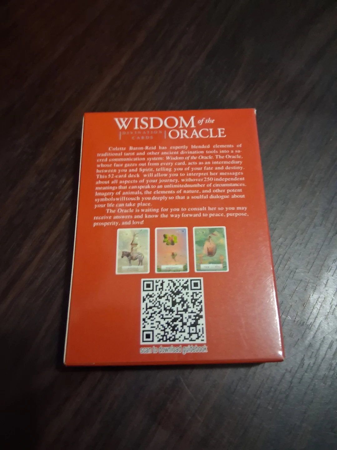Selling Wisdom of the Oracle Divination Cards by Colette Baron-Reid. The cards feature imagery of animals, elements of nature, and other potent symbols. The oracle is waiting for you to consult her so you may receive answers and know the way forward to peace, purpose, prosperity, and love