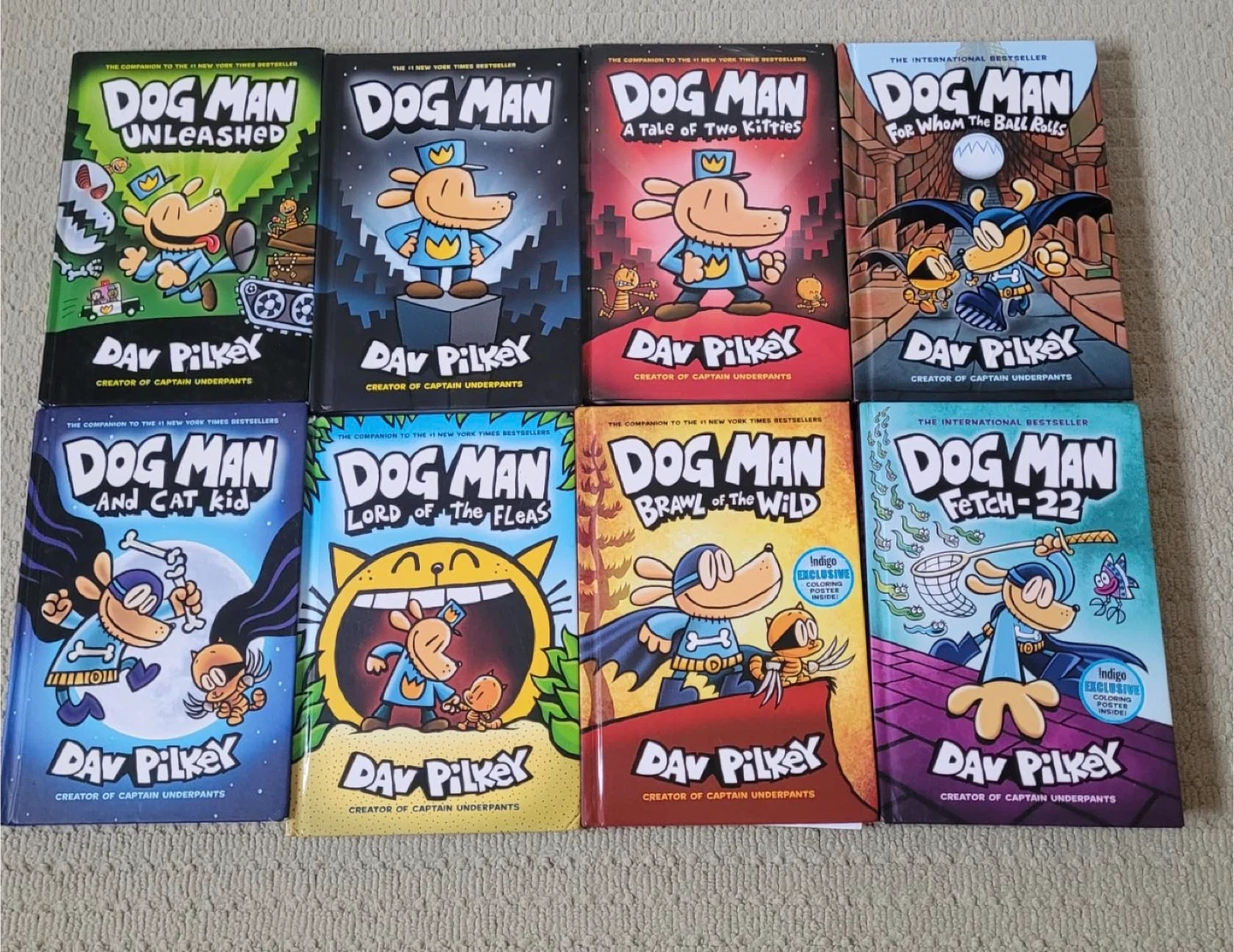 Selling a collection of Dog Man books by Dav Pilkey! This series is a fun read for kids. Titles include Unleashed, A Tale of Two Kitties, For Whom the Ball Rolls, And Cat Kid, Lord of the Fleas, Brawl of the Wild, and Fetch-22