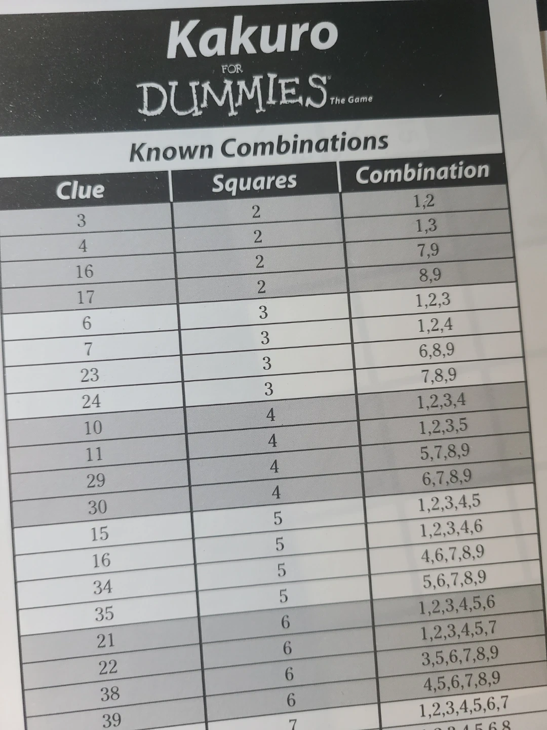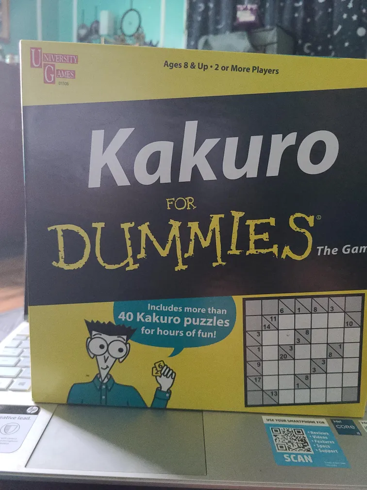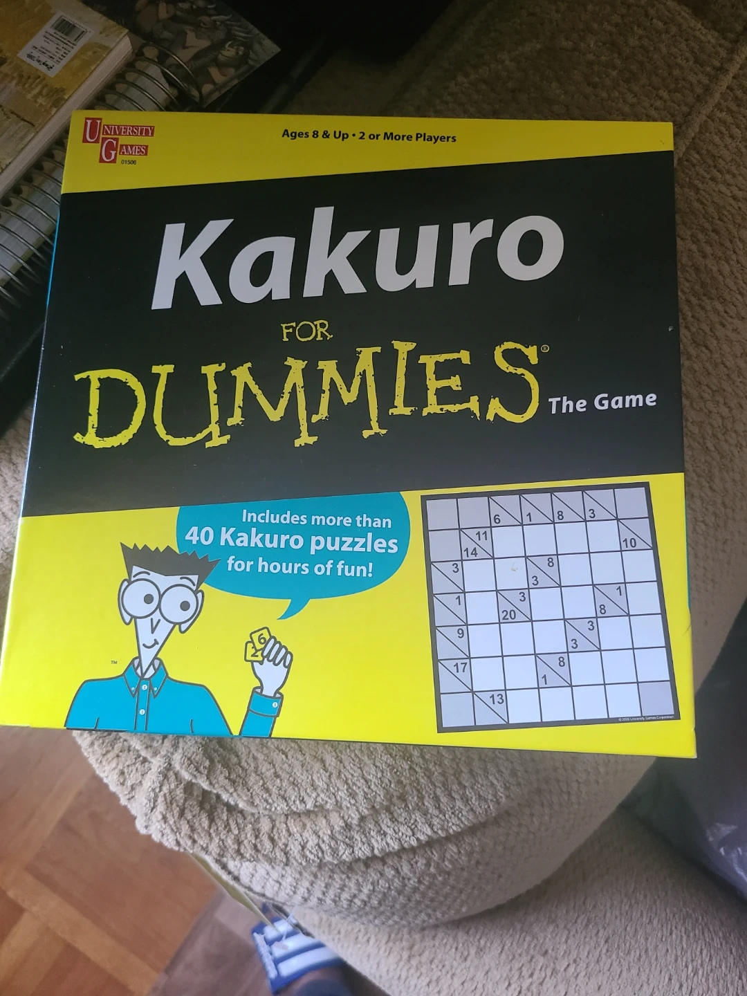 Selling a Kakuro for Dummies game! It's suitable for ages 8 and up and can be played by 2 or more players. The game includes more than 40 puzzles for hours of fun, a set of number tiles, two training puzzles, and the rules of play