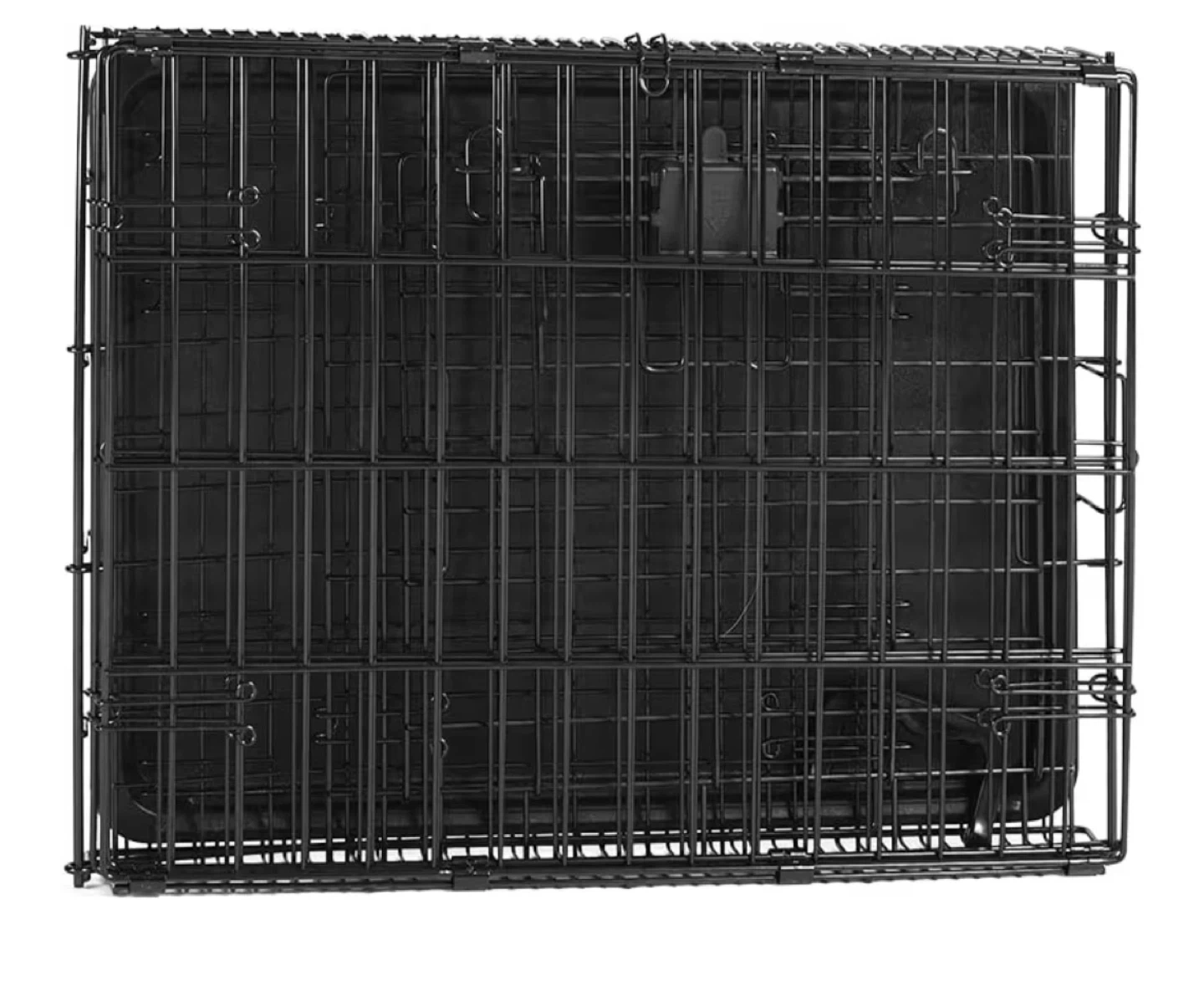 - 24-inch indoor dog crate made of durable metal wire with a sturdy base tray and top handle included