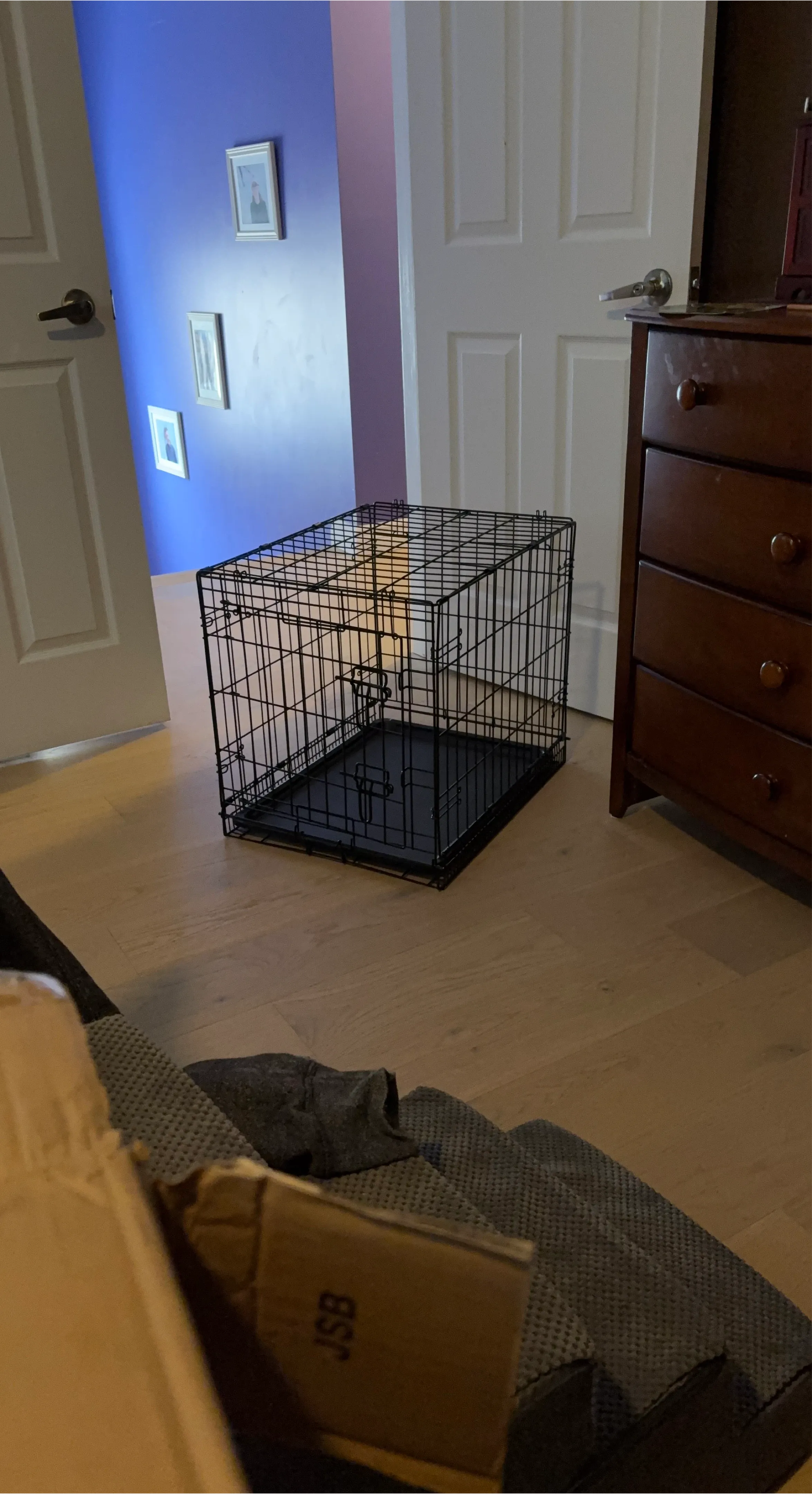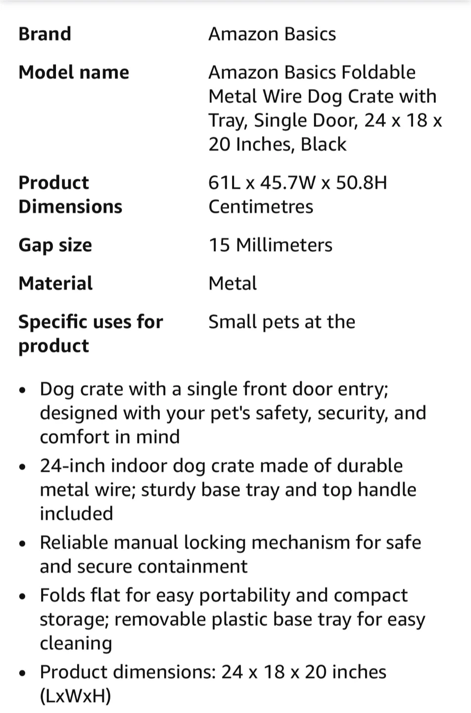 I'm selling an Amazon Basics foldable metal wire dog crate with a single front door entry. Designed with your pet's safety, security, and comfort in mind.