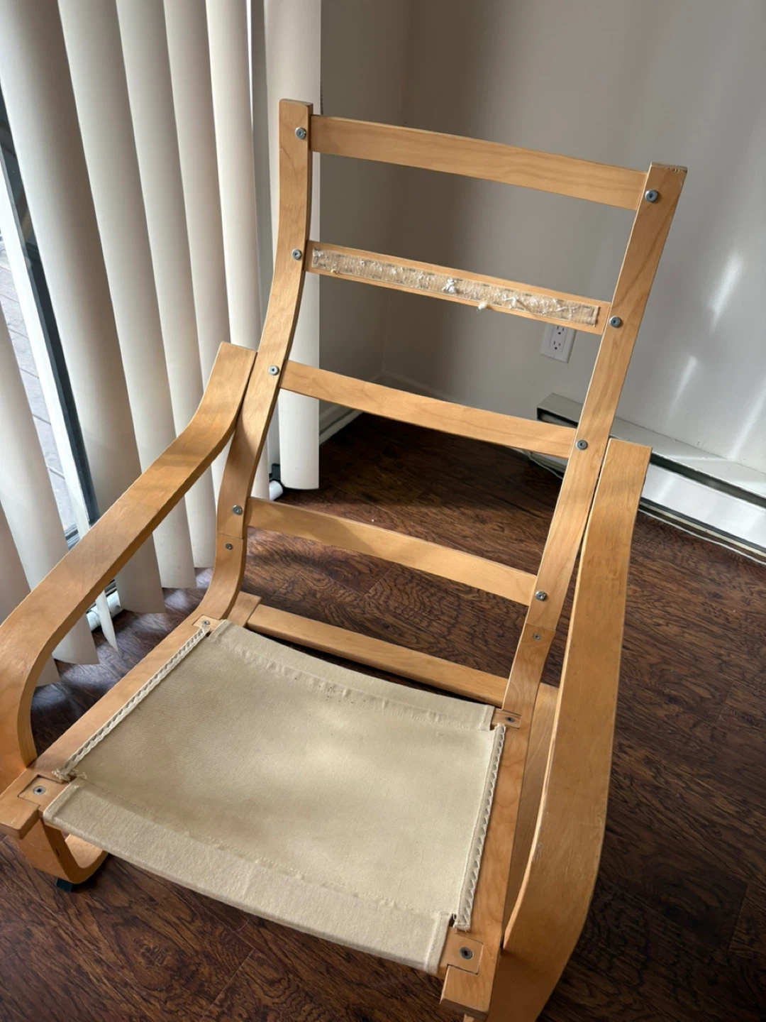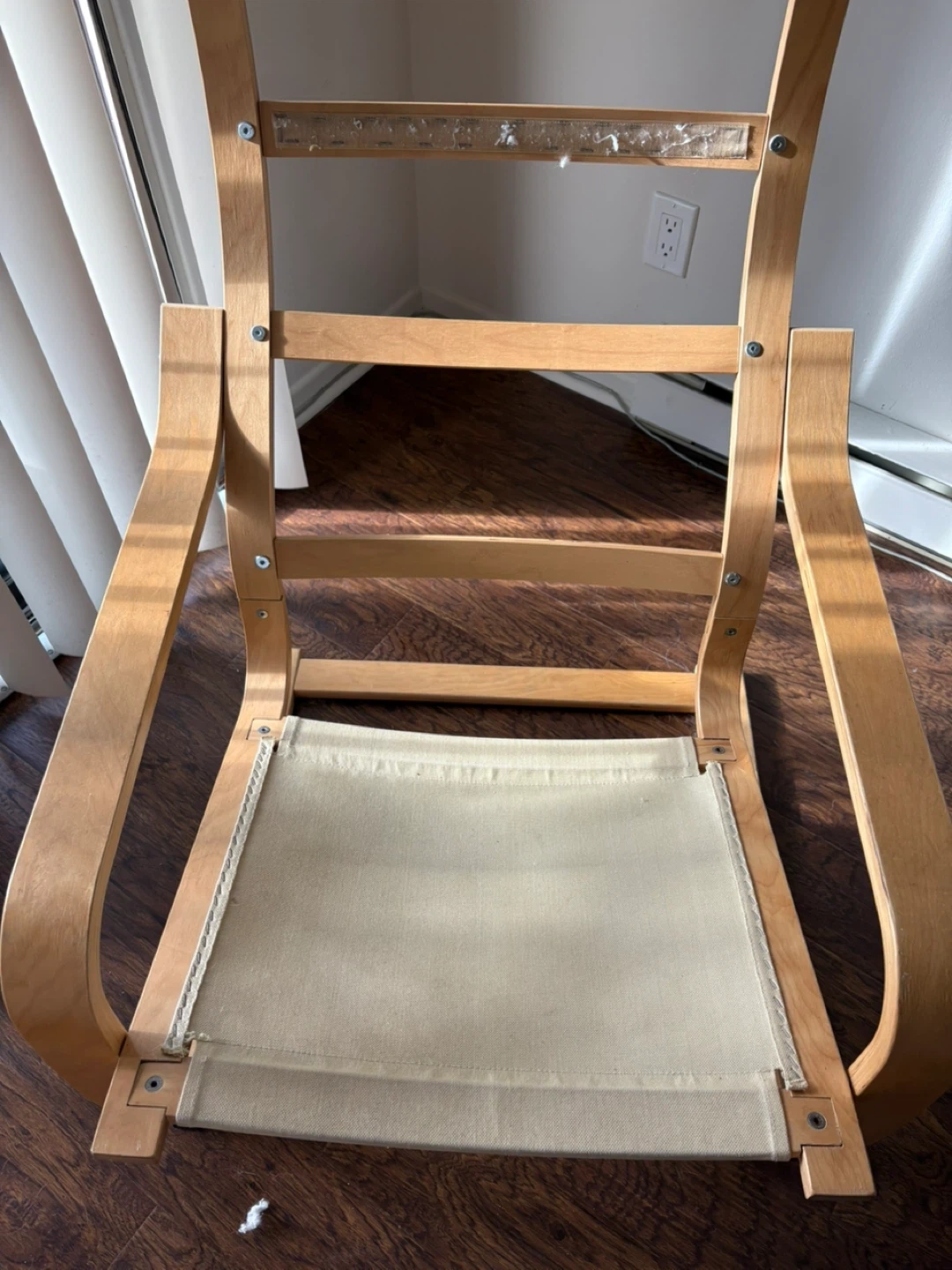 Selling an IKEA Poang chair frame in birch veneer . It's a comfy and stylish chair that's perfect for relaxing. There are some signs of wear and tear, but it's still in good condition for its age. It's a great addition to any living room or bedroom!