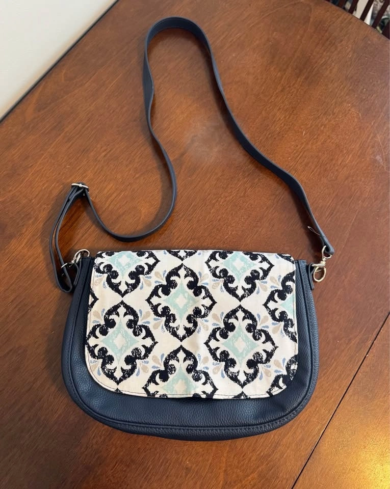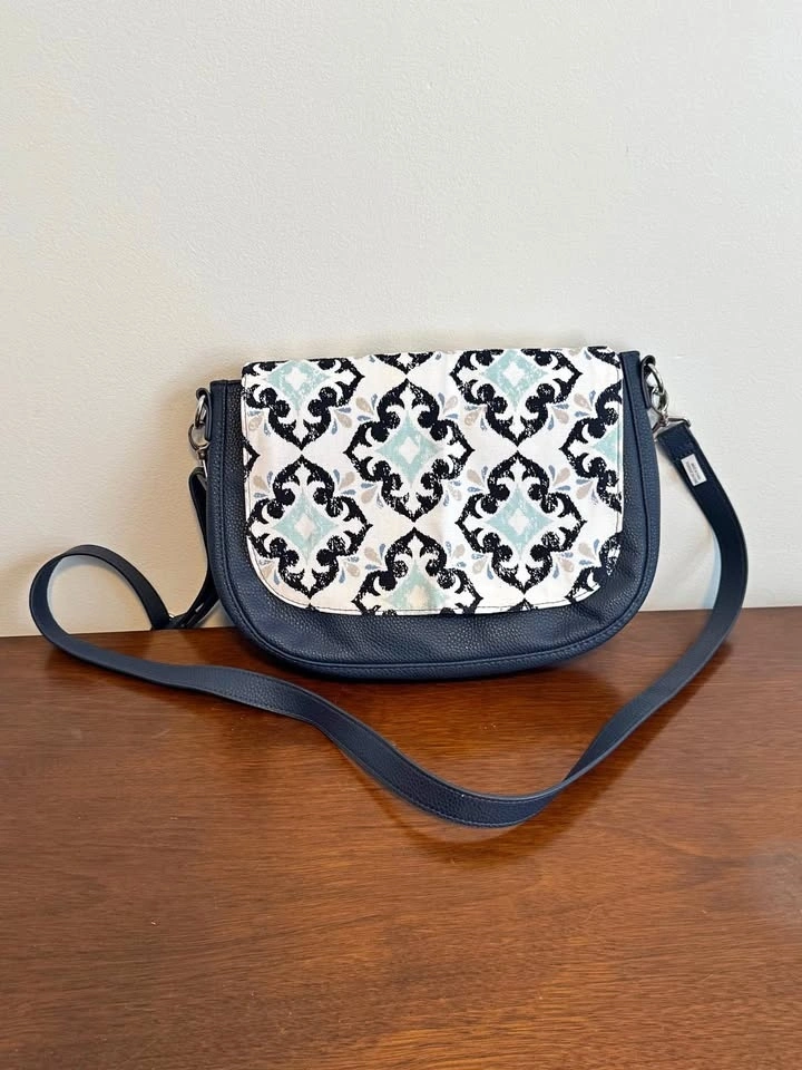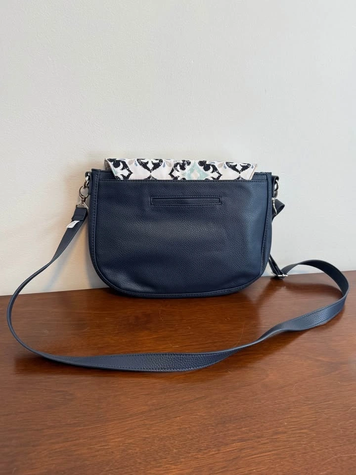 Strap: Midnight Navy Pebble- adjustable for shoulder or crossbody.