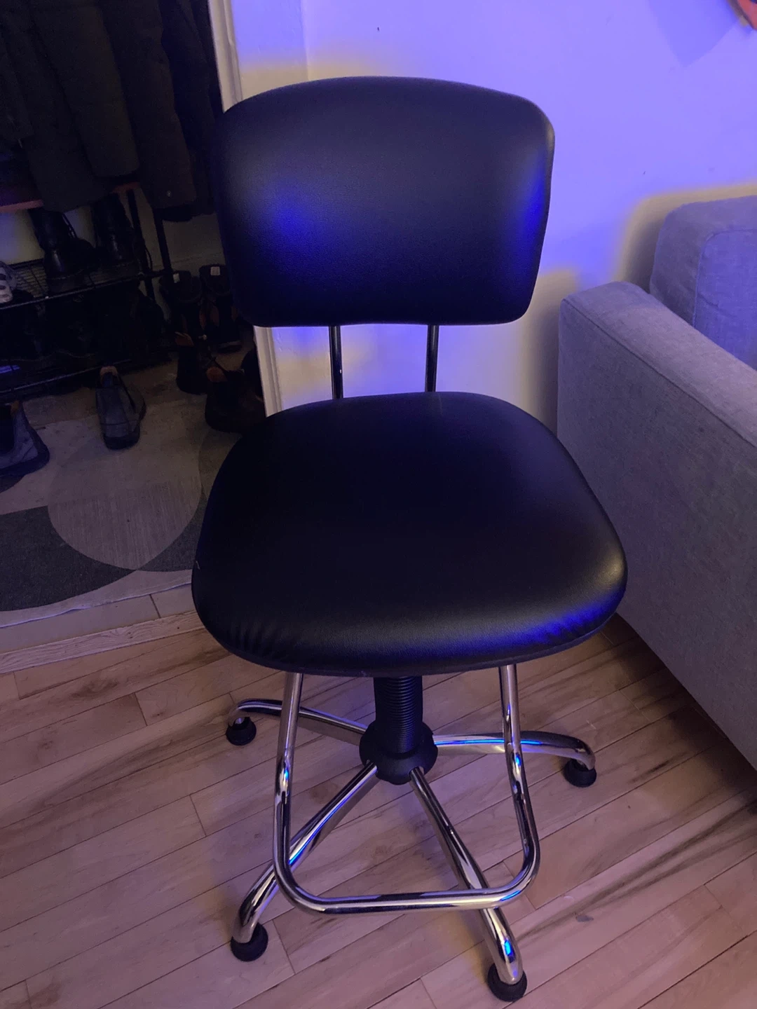 Selling a black chair. It's in good condition and ready for a new workspace or home office setup or even for the barber store.
