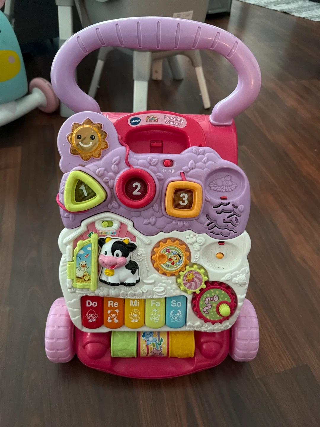 Selling a VTech Sit-to-Stand Learning Walker! It's in great shape and ready for a new little one to enjoy. This interactive walker helps babies develop from crawler to walker through adaptive technology. With a variety of fun activities, it keeps little ones entertained while they learn and explore