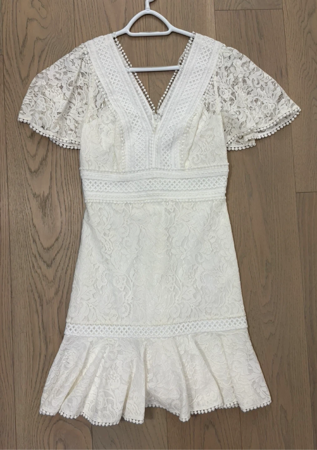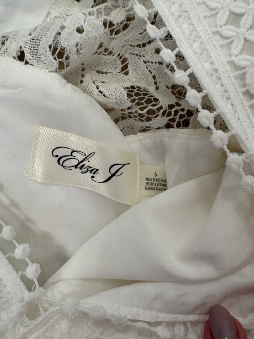 Selling a beautiful lace dress from Eliza J in size 6! This dress is perfect for a special occasion. The lace detailing is so delicate and pretty, and it has a flattering fit. It's in good condition and ready for a new home. Worn once to a party and it’s been in my closet since.