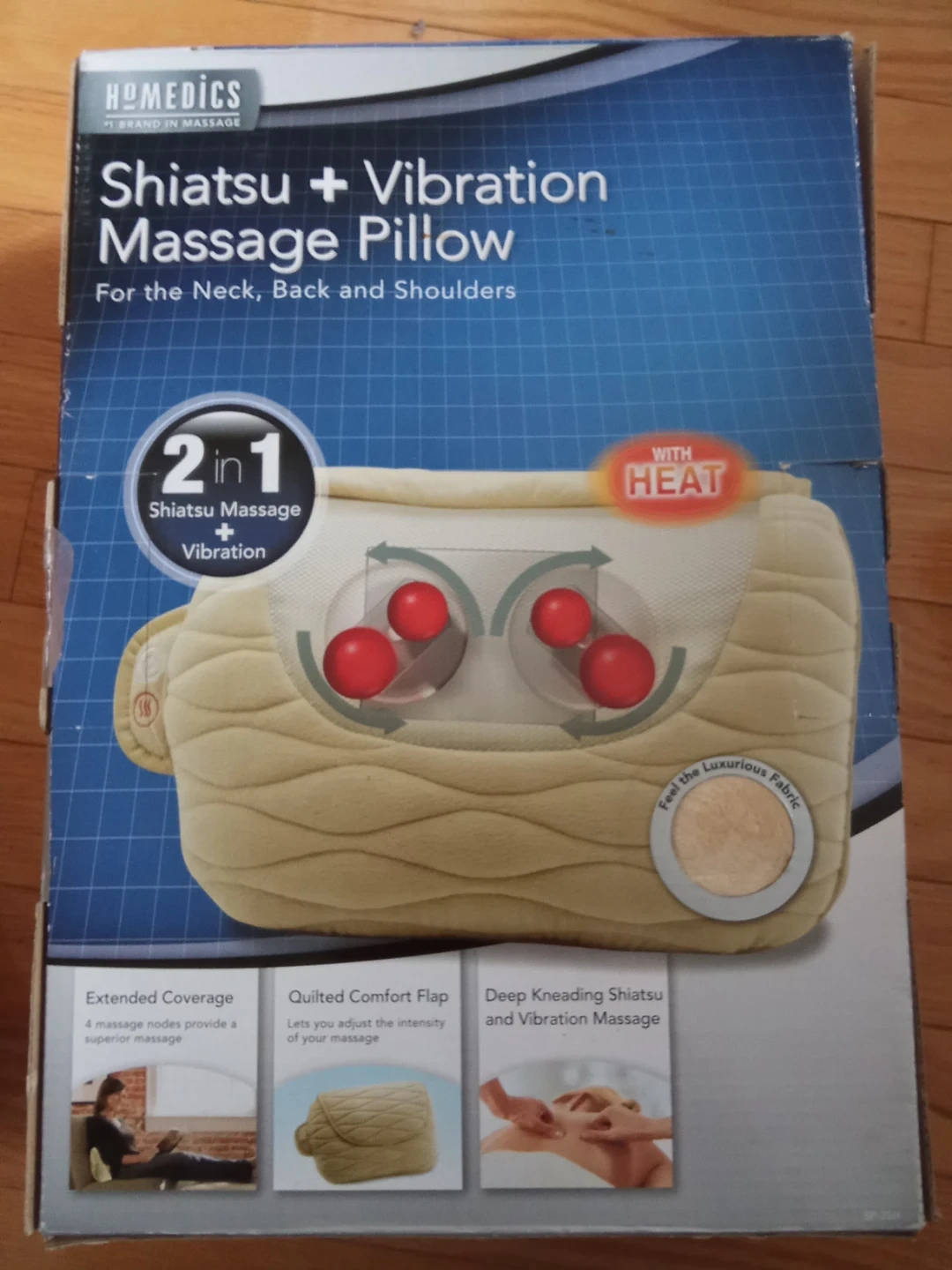 Get ready to relax with this HoMedics Shiatsu + Vibration Massage Pillow! It's designed for your neck, back, and shoulders. The pillow features 2-in-1 Shiatsu massage and vibration with heat. It also has extended coverage with 4 massage nodes for a superior massage and a quilted comfort flap to adjust the intensity of your massage. Enjoy deep kneading Shiatsu and vibration massage!