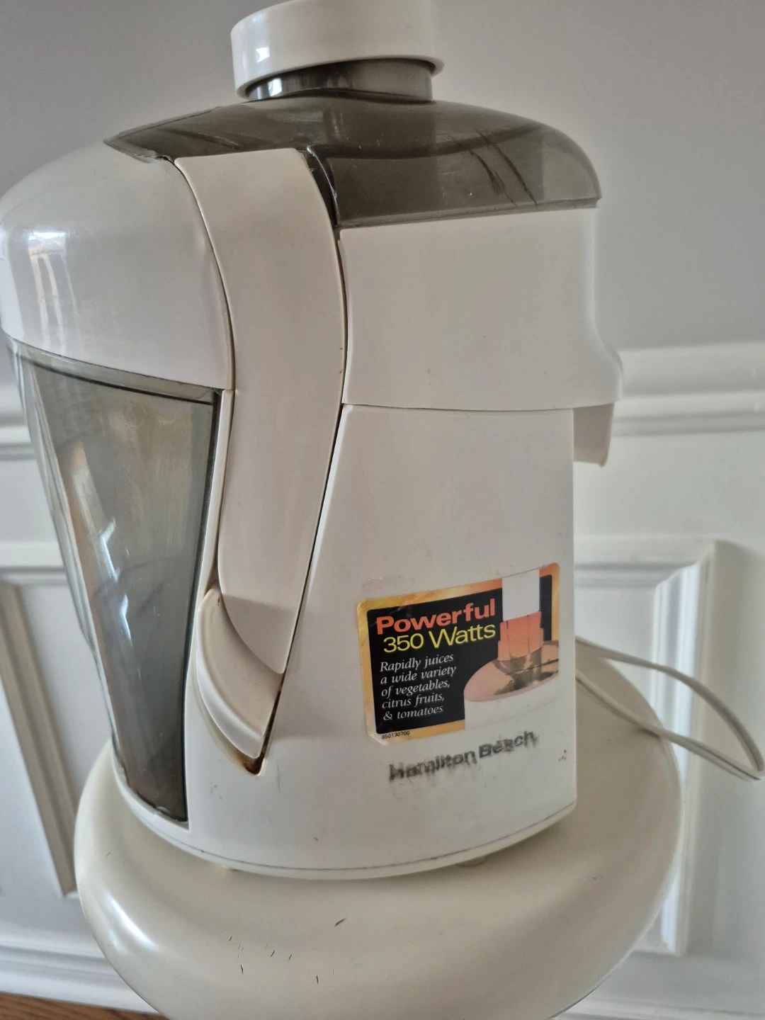 Selling a Hamilton Beach juicer. It's a powerful 350 Watts and can rapidly juice a wide variety of vegetables, citrus fruits, and tomatoes!