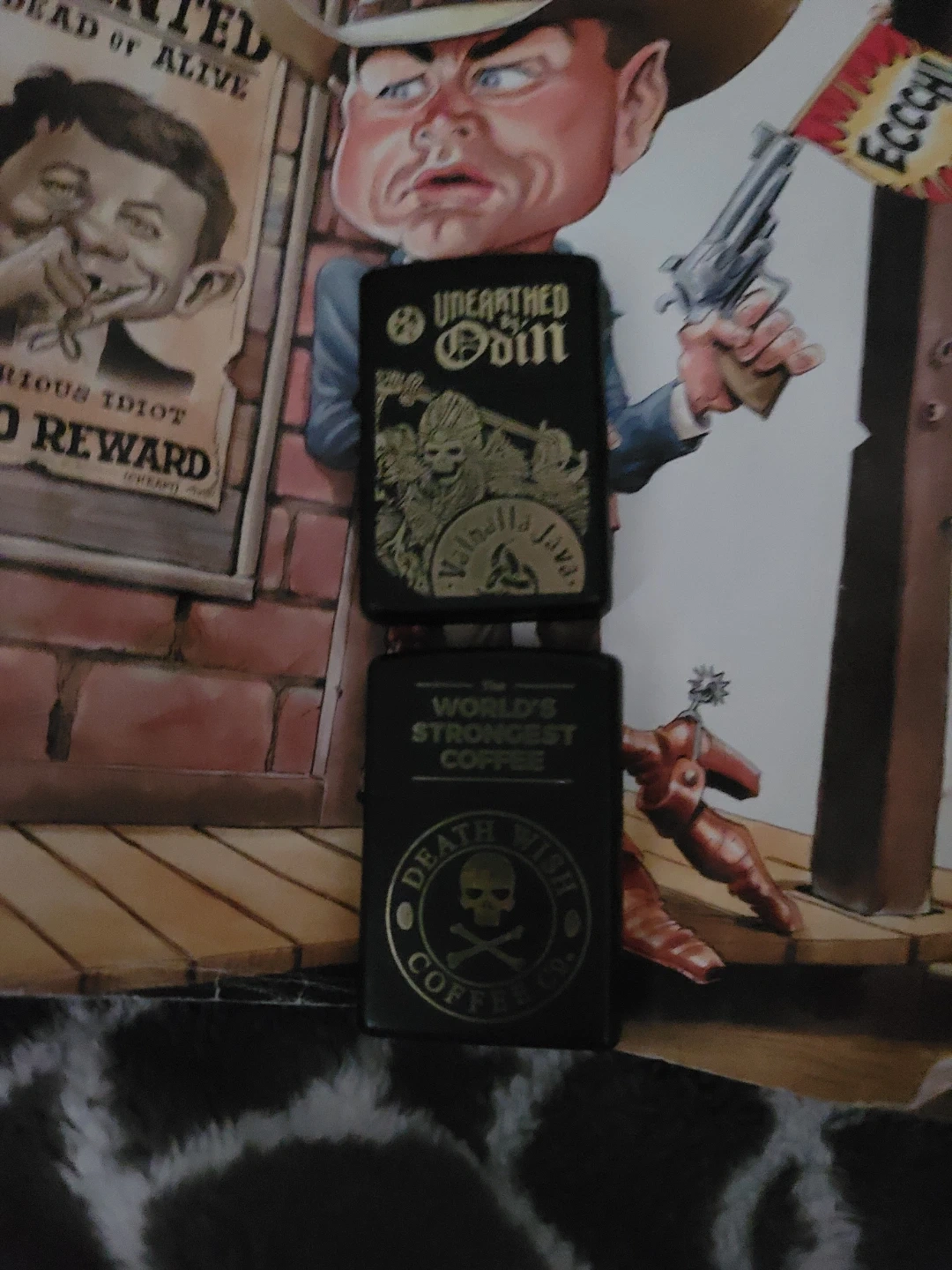Two Lighter Death Wish Coffee & Unearthed by Odin Lighters