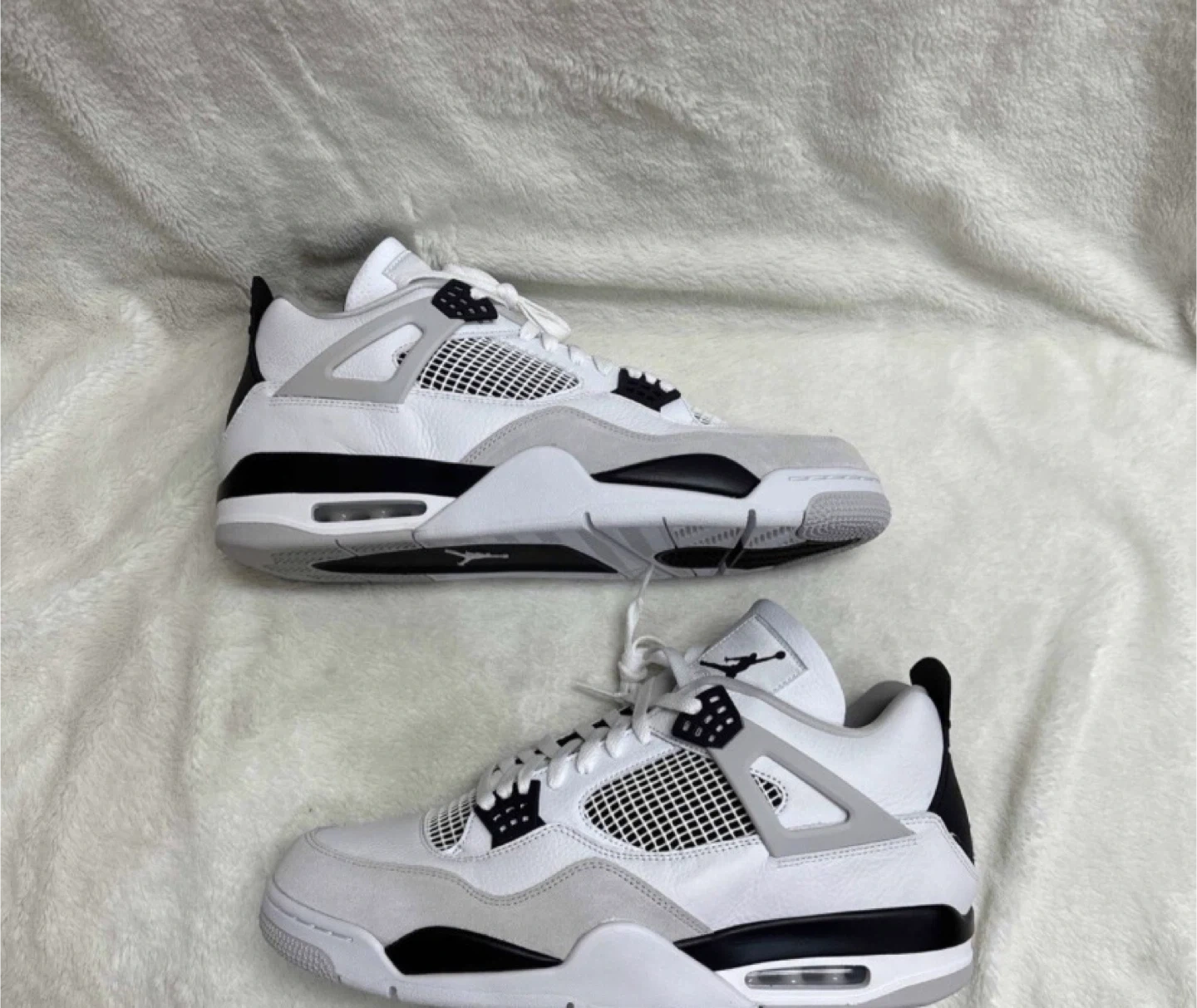 Selling a pair of Air Jordan 4 Retro in the military black . These sneakers are in great condition and ready for a new owner! They're a stylish and comfortable choice for everyday wear.