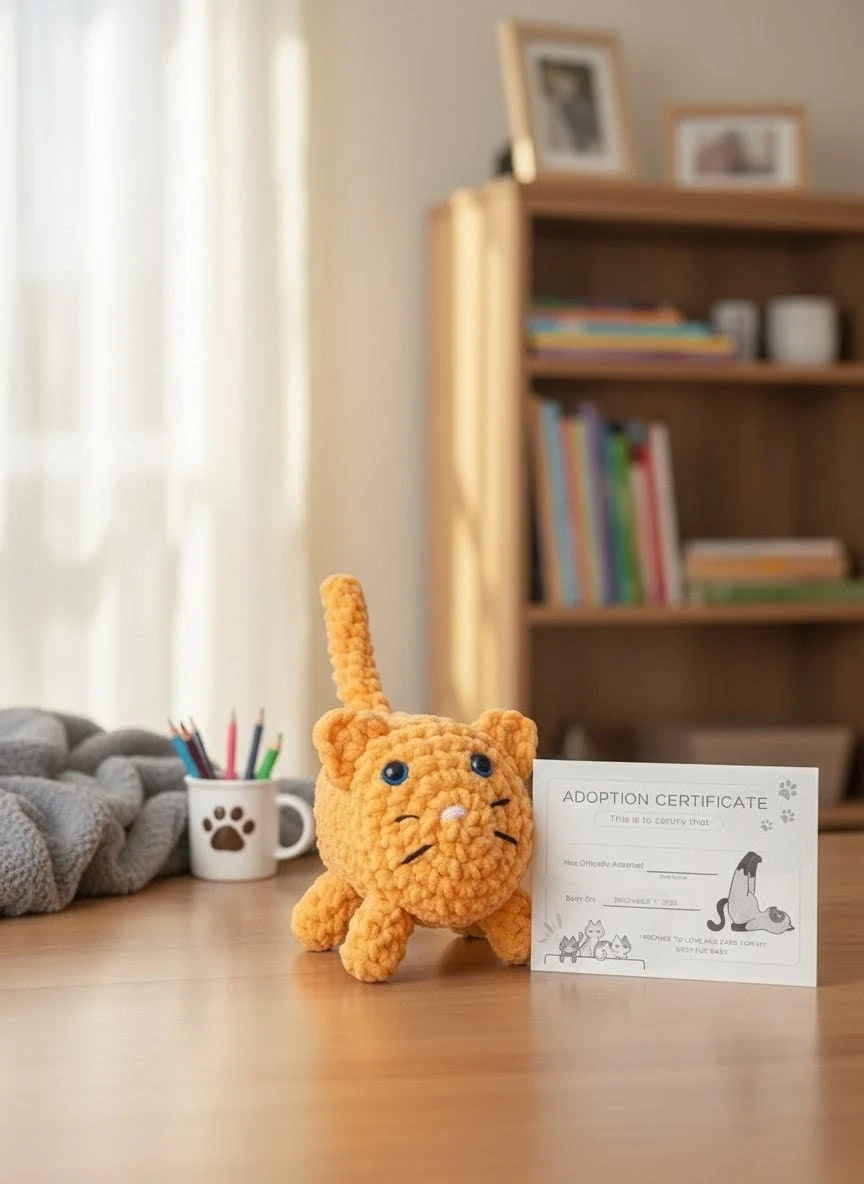 Comes with a bed and a little adoption certificate