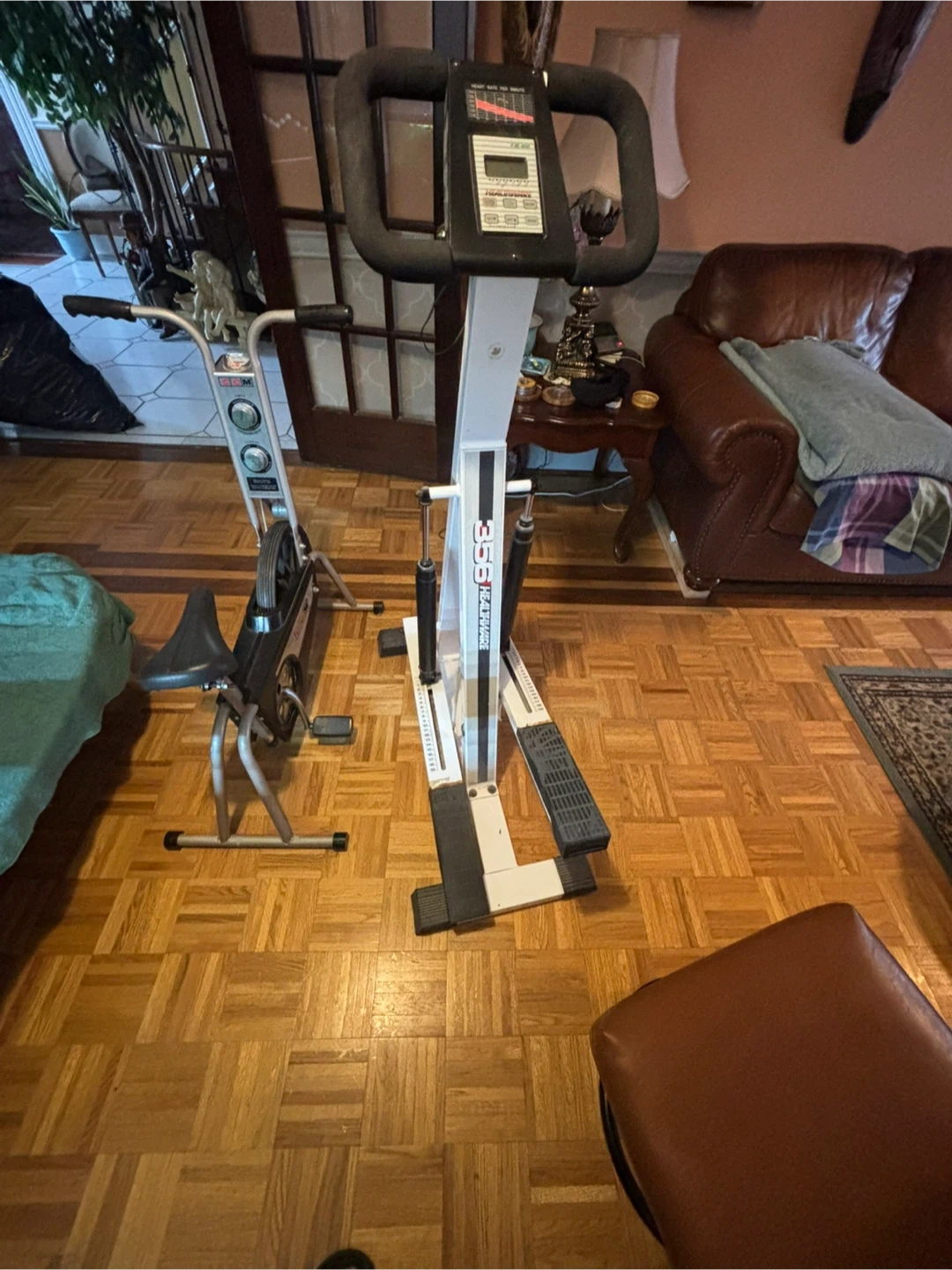 Selling a Body Flex fitness machine. It appears to be in good condition and ready for a new owner looking to get a workout in at home. It has both an exercise bike and a stepper. Ccm stationary bike. $20. Healthware 356 Stair climbers. $40