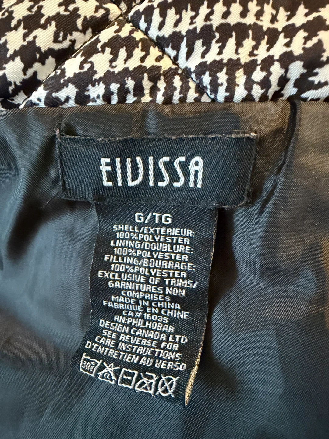 Stylish Eivissa quilted vest in a classic houndstooth pattern! It's a size G/TG and made with 100% polyester shell, lining, and filling. Perfect for adding a touch of elegance to any outfit