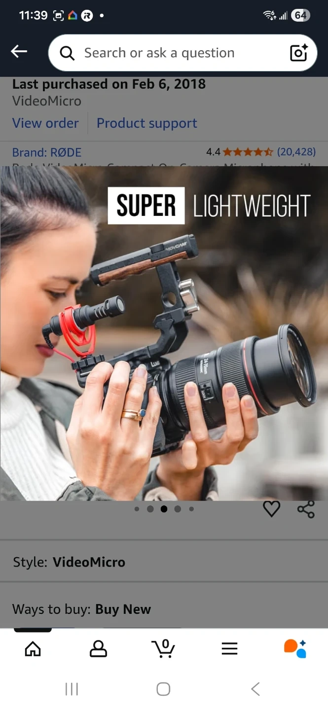 Rode videomicro compact microphones for phones and camera.