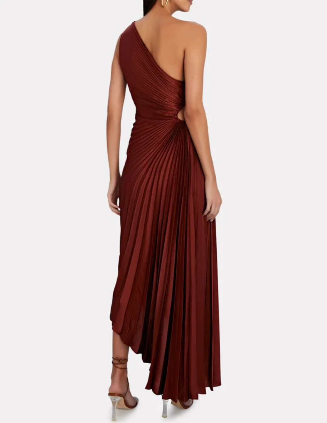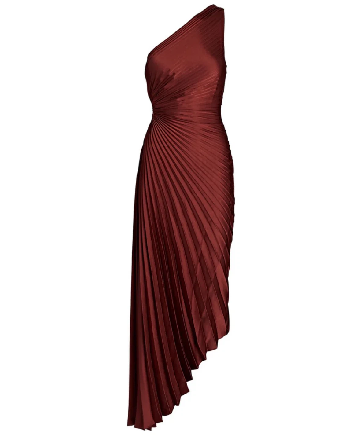 PLEATED SATIN FABRIC WITH ASYMMETRIC HEM