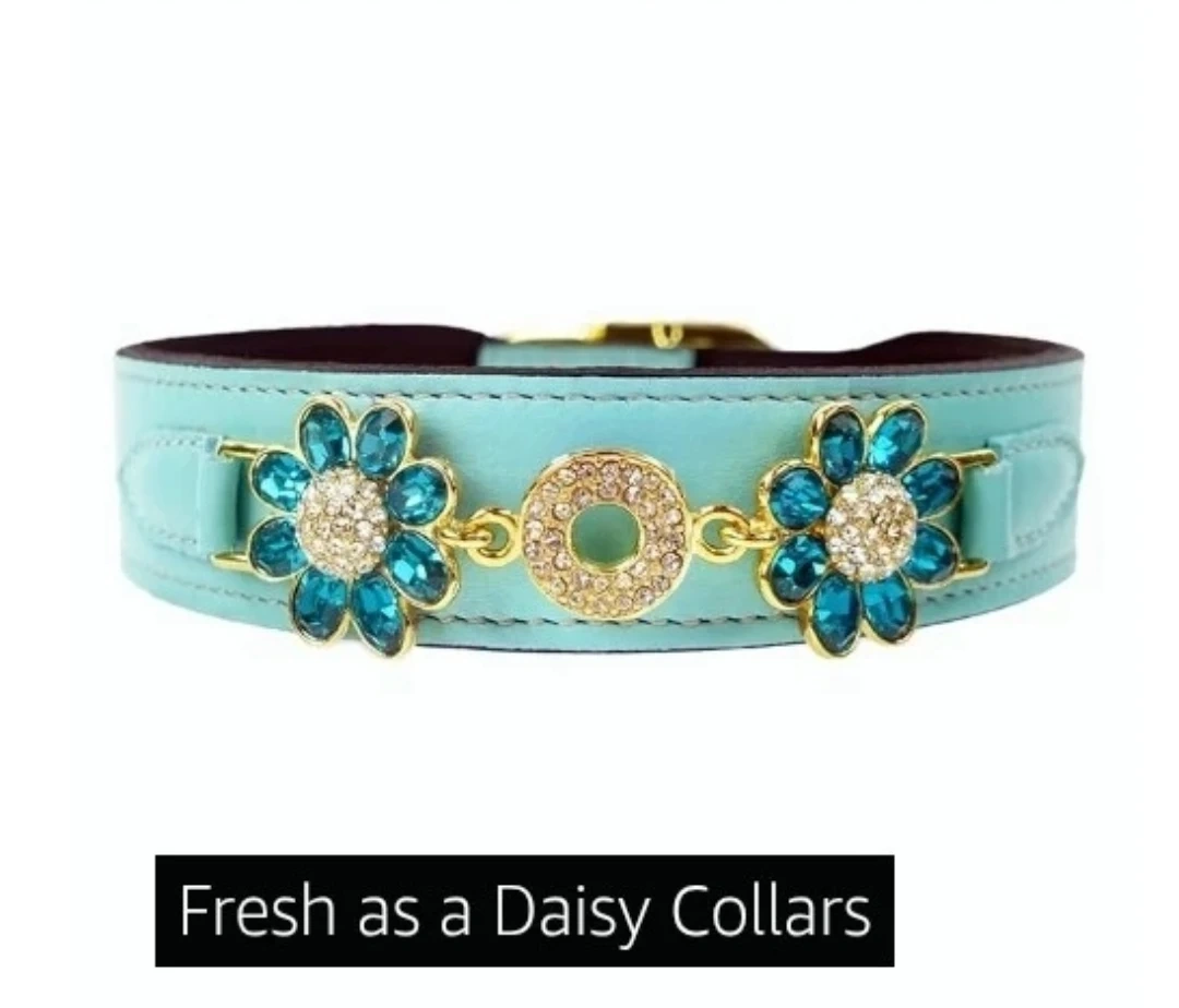 Selling a beautiful Hartman & Rose 'Fresh as a Daisy' dog collar and leash set in a lovely turquoise blue color. The collar is adorned with decorative flower embellishments. The collar is size 18 and the 1.2 inch wide leash is 46 inches long. Made with genuine Italian leather in Canada! The collar sold for $129.99 and the leash for $69.99.