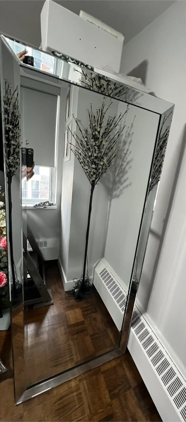 Selling a large framed mirror, perfect for a bedroom or living space! It's a full-length mirror and would look great in any room