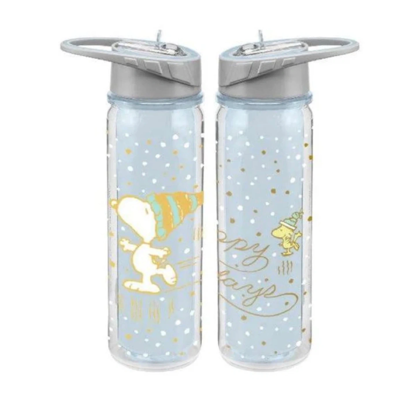 This is a BRAND NEW cute Snoopy 'Happy Days' water bottle! It's perfect for kids or anyone who loves Snoopy. The bottle features Snoopy and Woodstock in a fun, festive design. Great for staying hydrated on the go!