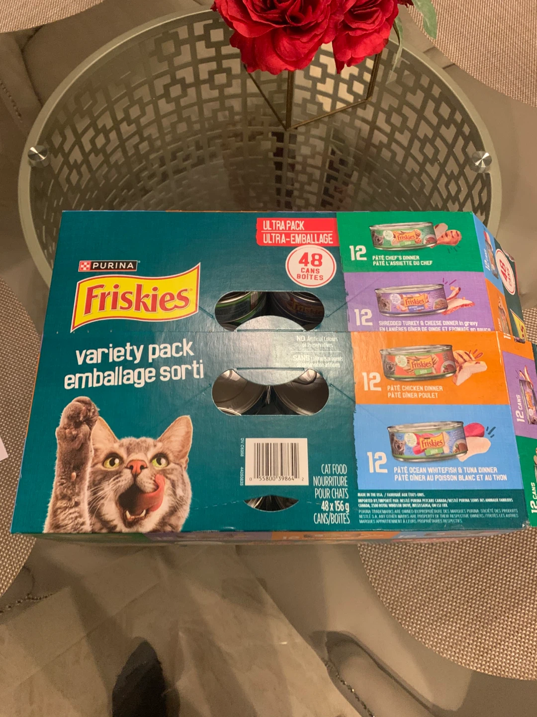 giving away a Purina Friskies variety pack with 48 cans of cat food! It includes pate chef's dinner, shredded turkey & cheese dinner, pate chicken dinner, and pate ocean whitefish & tuna dinner. Perfect for keeping your kitty happy and well-fed