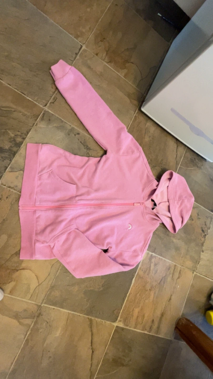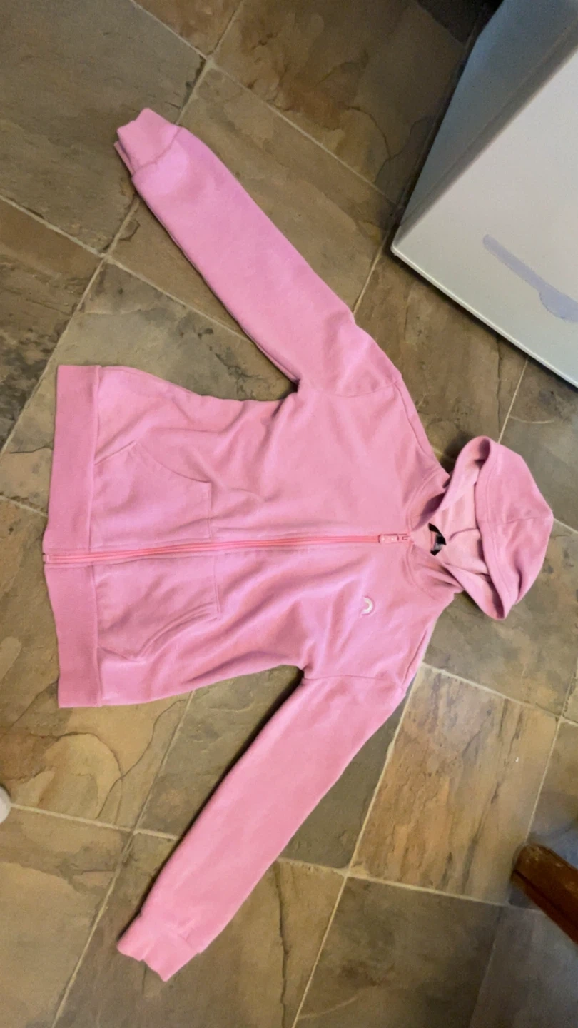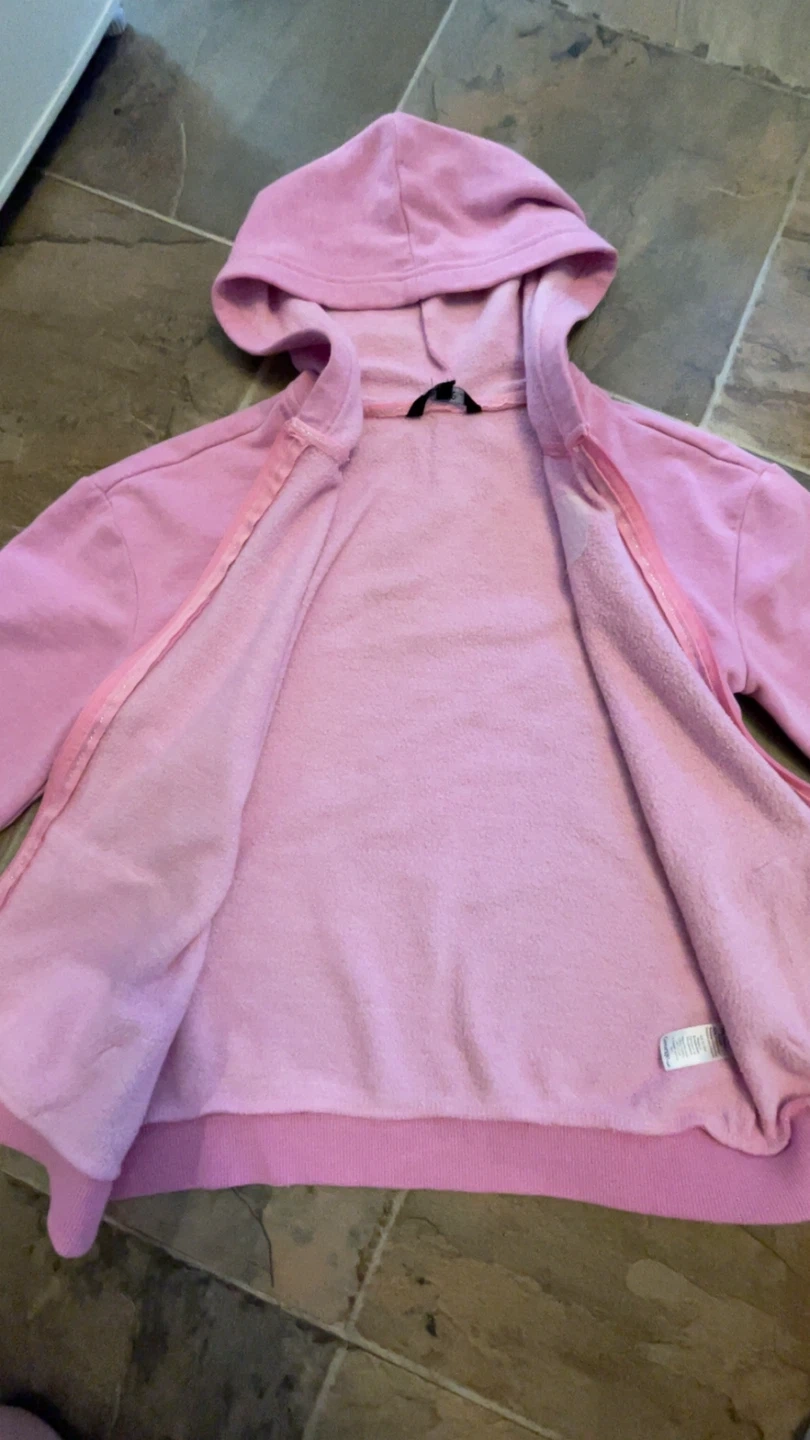 Here's a comfy pink zip-up hoodie! It's in great condition and ready for a new owner. Perfect for layering or just lounging around the house. It’s barely ever been worn💞