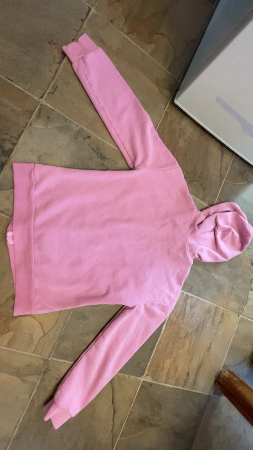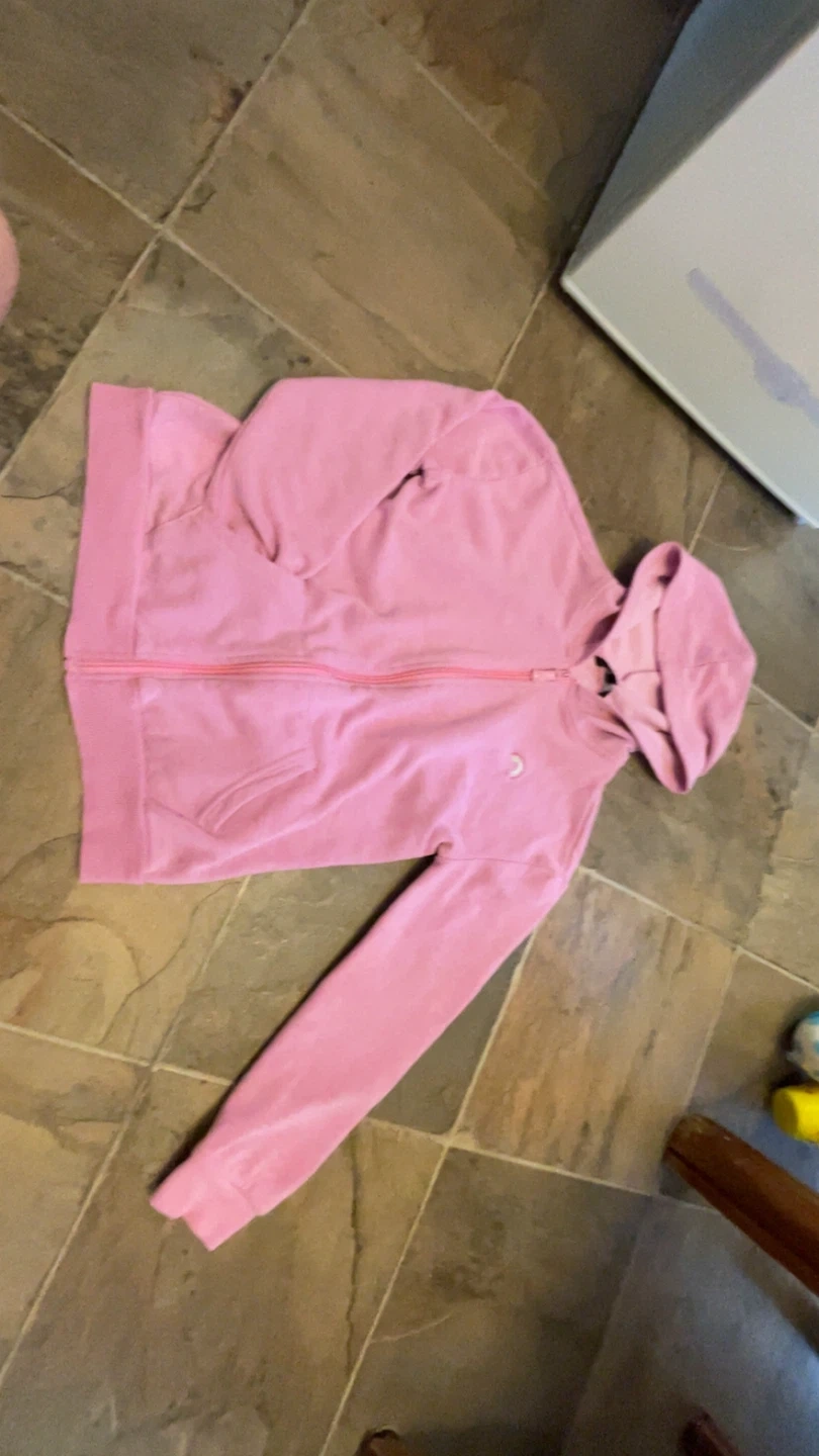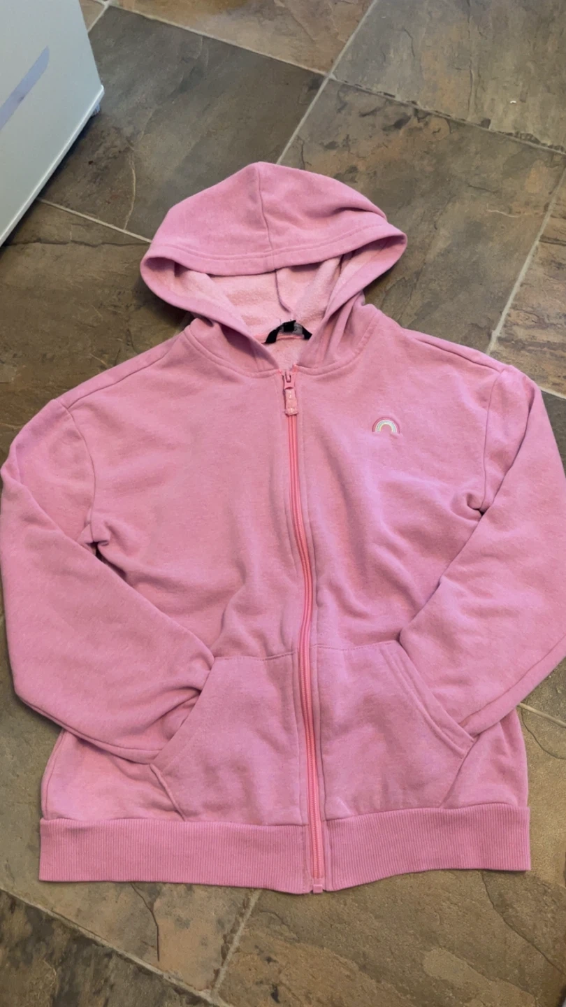 Here's a comfy pink zip-up hoodie! It's in great condition and ready for a new owner. Perfect for layering or just lounging around the house. It’s barely ever been worn💞