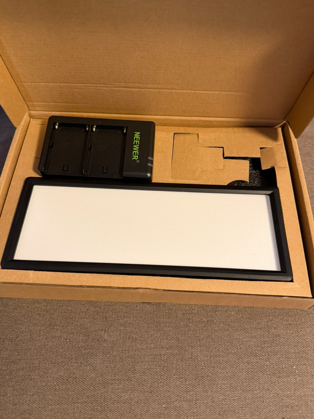 Includes Neewer dual battery charger. Battery not included.