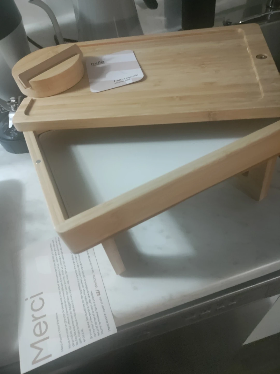 Selling a Weelone mini bamboo sofa armrest table. It's in great condition and perfect for keeping things within easy reach while you relax on the couch