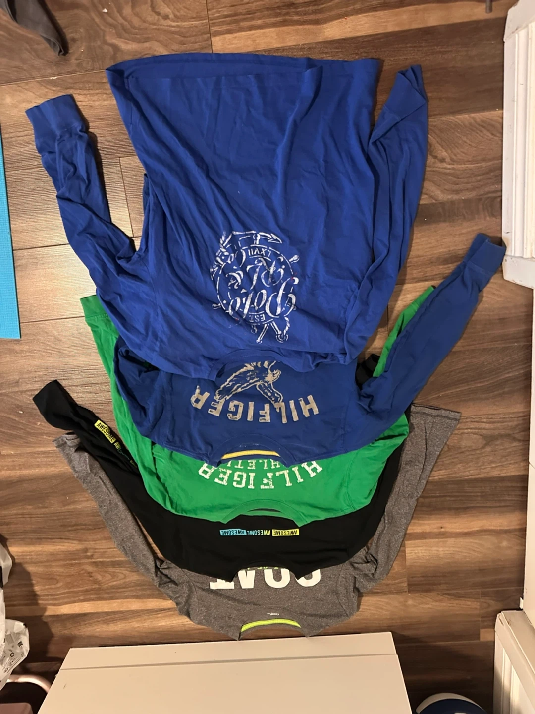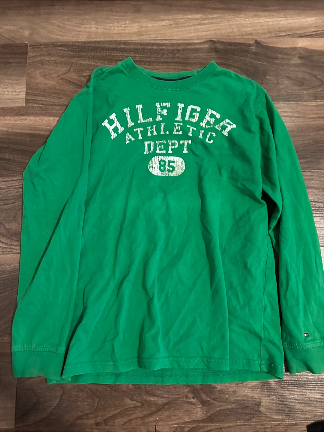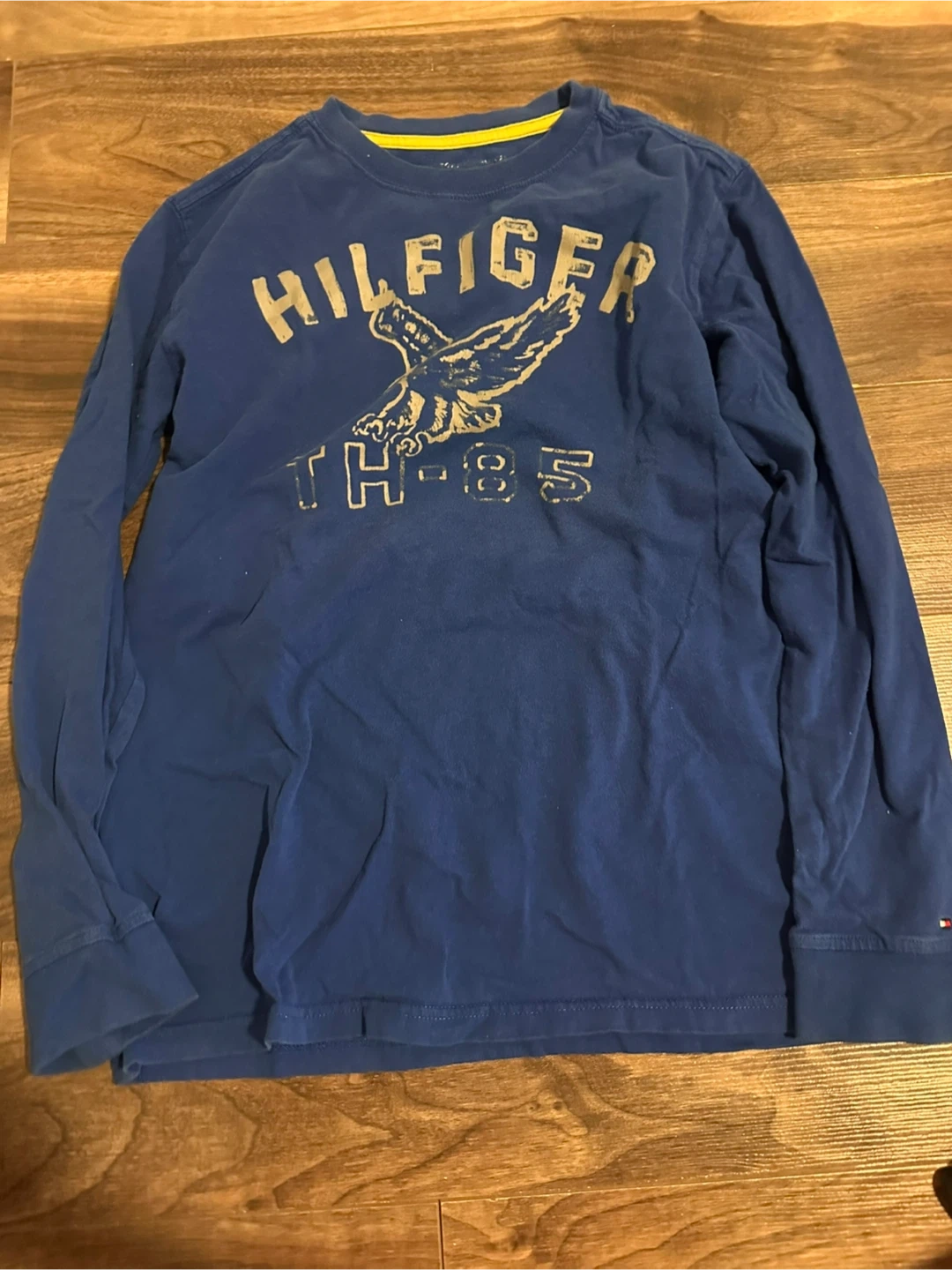Selling a bundle of boys' long sleeve shirts. Includes brands like Tommy Hilfiger, Polo Ralph Lauren, and George. Great for layering or wearing on their own