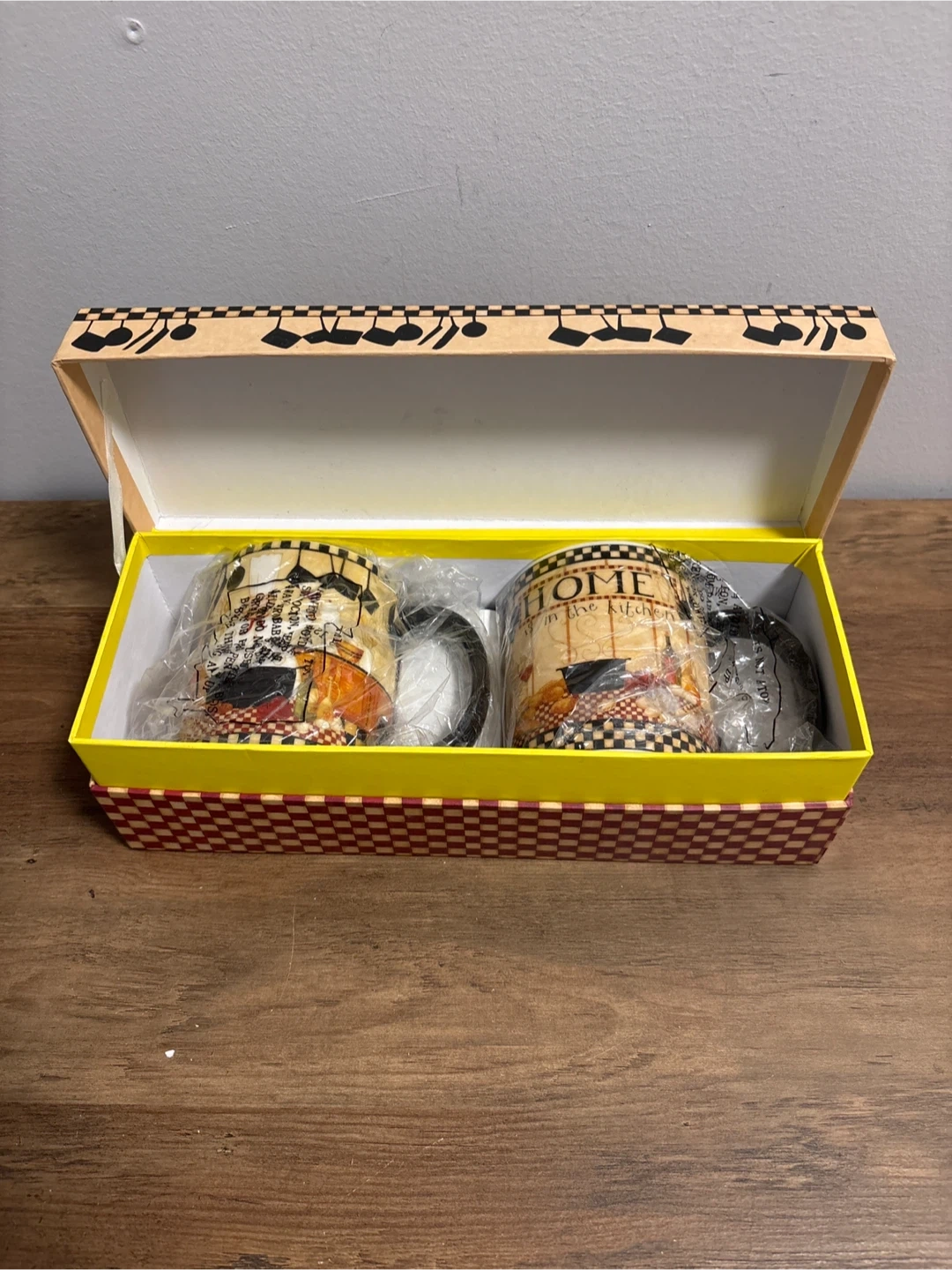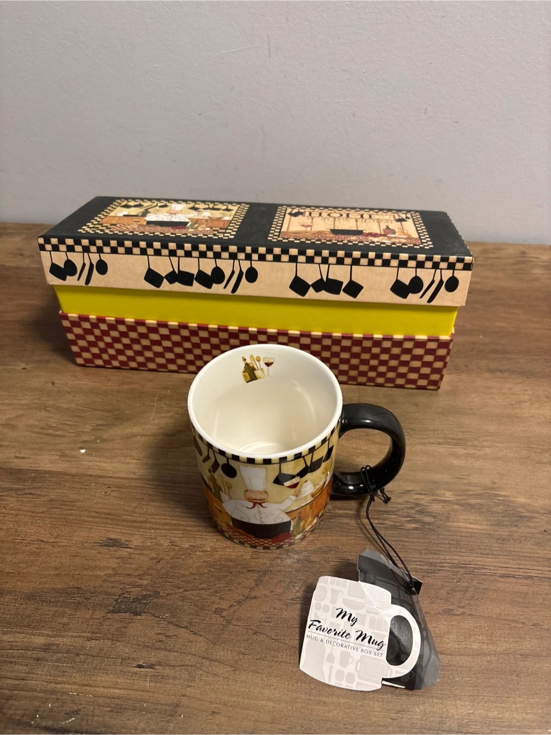 I'm selling a brand new Cypress Home Traditional Mug Gift Set! This set contains two 12 oz ceramic mugs and comes in a decorative box. The mugs are microwave and dishwasher safe. A perfect gift for the chef in your life!