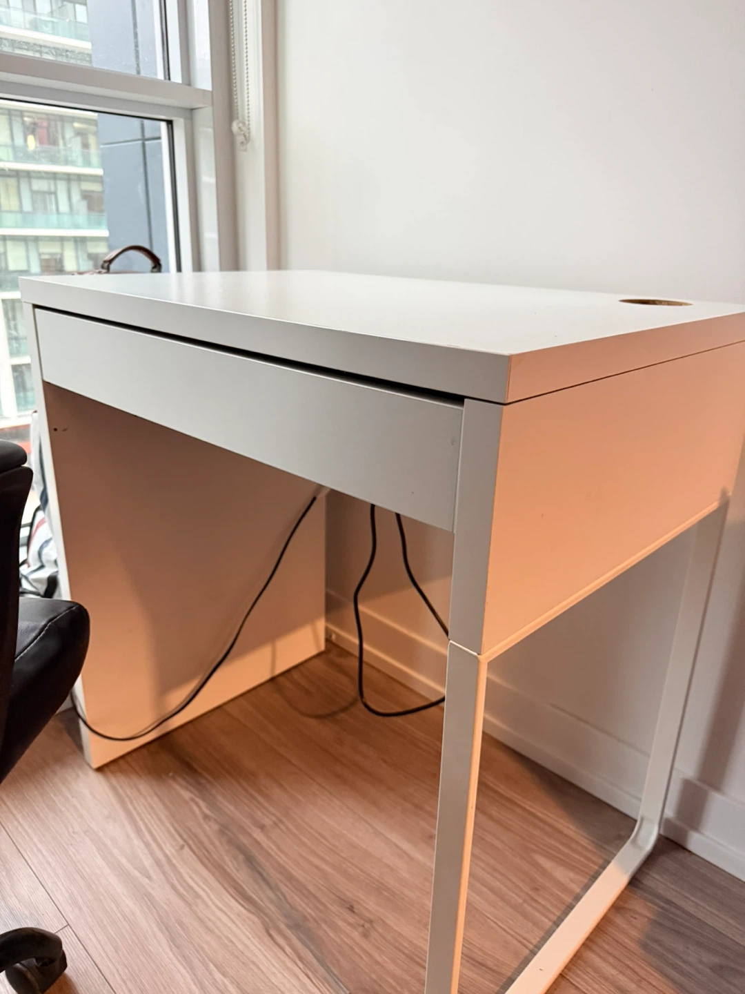 Selling a simple white desk that's in great shape! It features a clean design and a handy drawer for storage. Perfect for a home office or study space