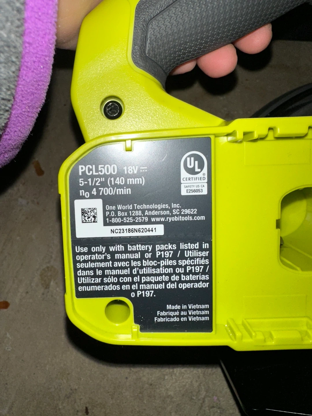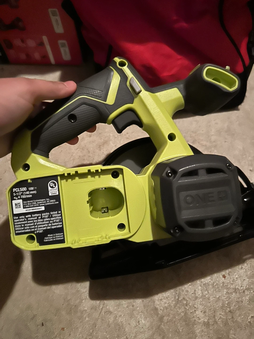 Selling a Ryobi PCL500 18V circular saw! It's brand new The saw has a 5-1/2" blade and runs at 4700 RPM. Note that it requires battery packs listed in the operator's manual or P197