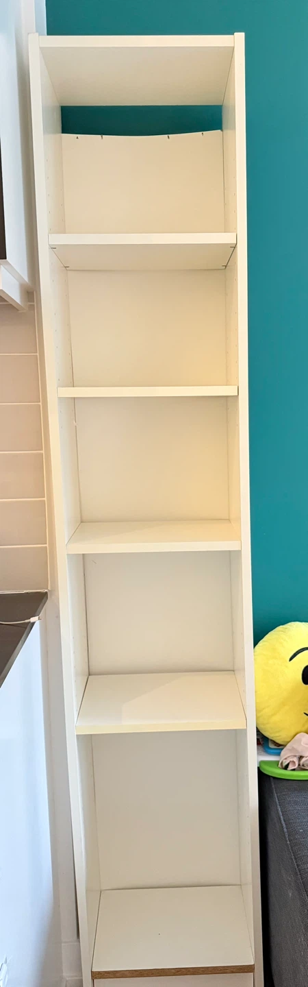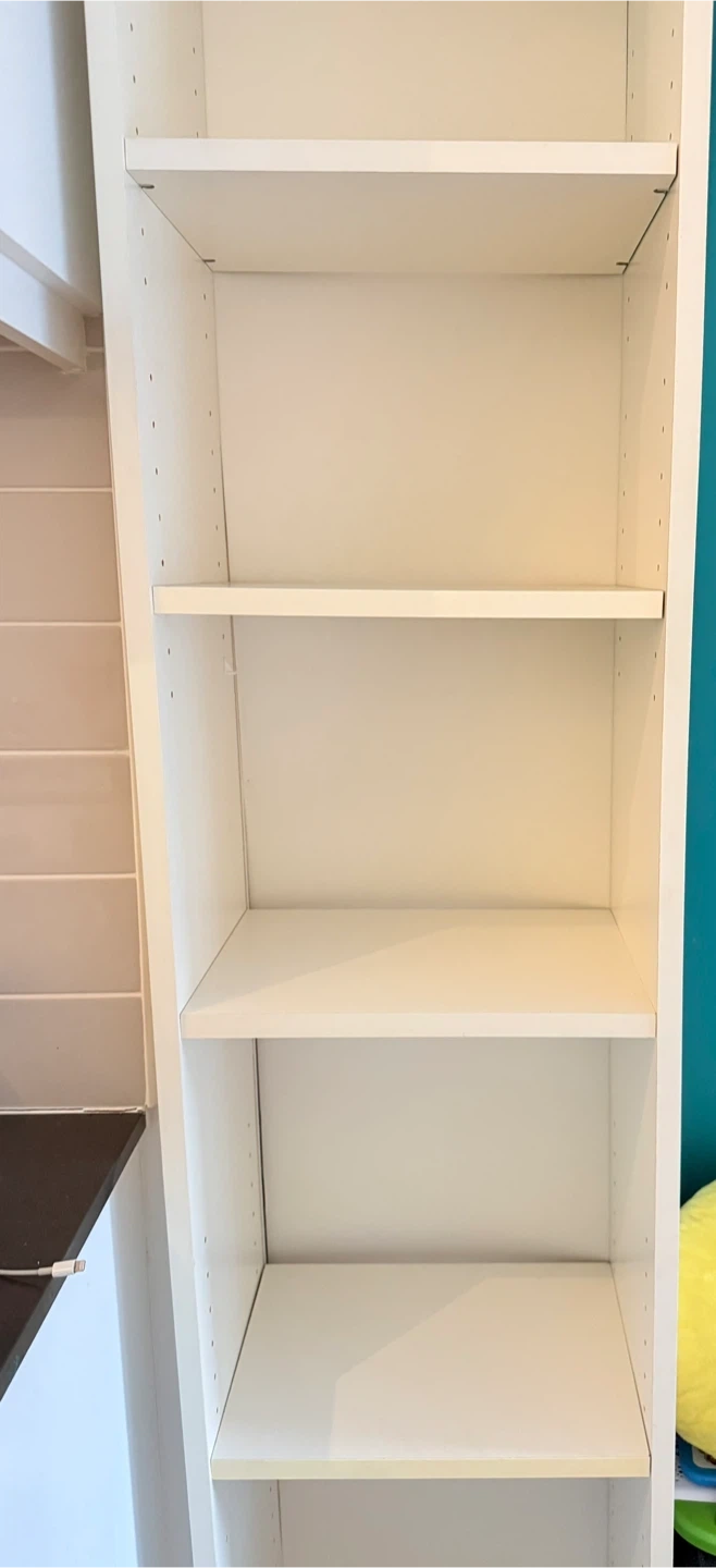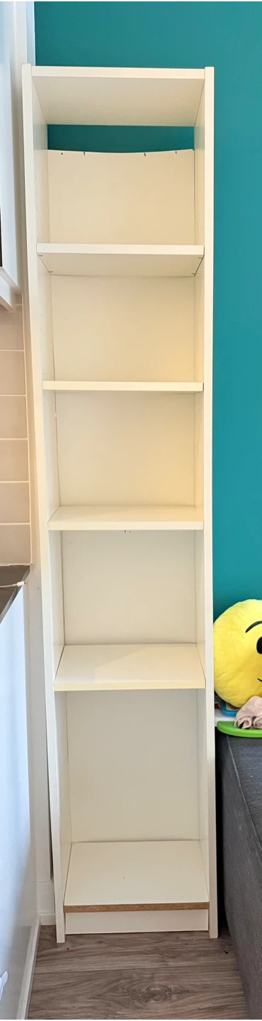 Selling a tall white bookcase in great shape! It's perfect for adding some extra storage and display space- either in living room or in closet.
