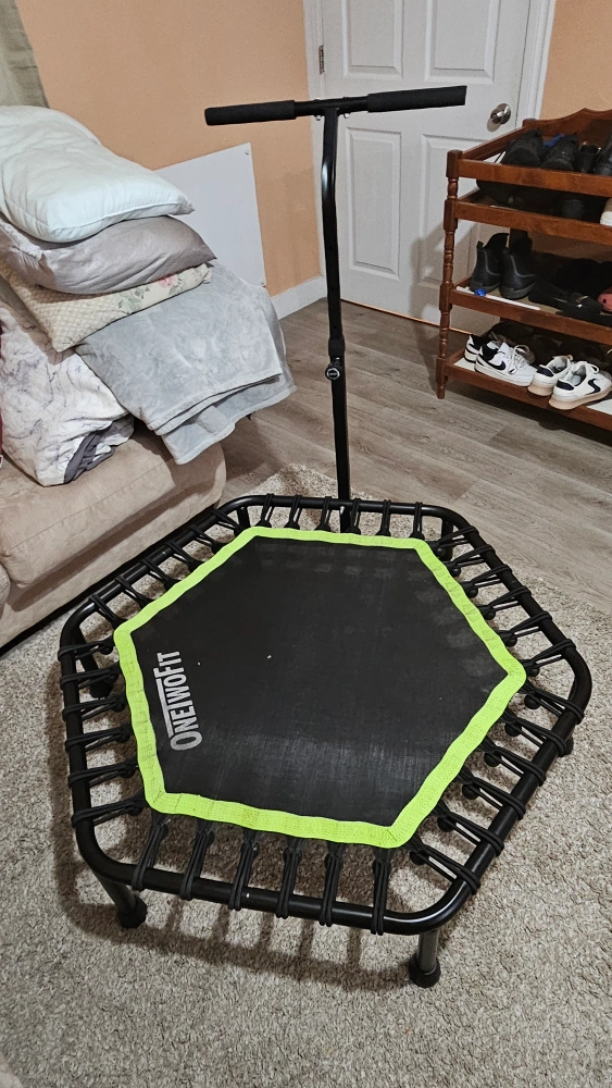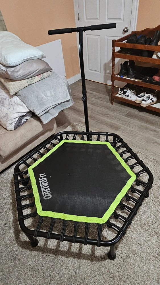 Selling a OnewoFit mini trampoline in great condition! It comes with a handle bar for added stability. Perfect for a fun and effective workout at home
