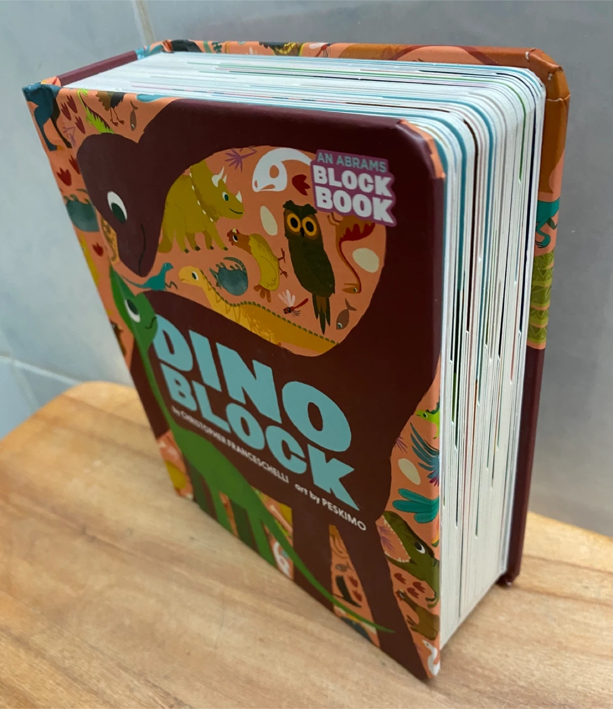 “Dino Block” is a board book by Christopher Franceschelli. It's part of the Abrams Block Book series. A fun book for kids who love dinosaurs.