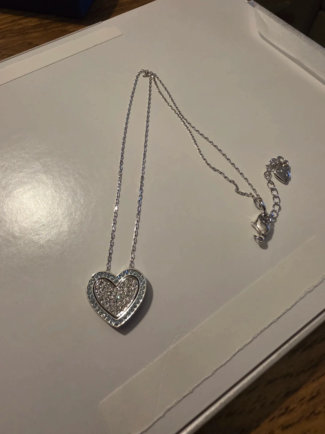 Selling a beautiful Swarovski heart necklace in excellent condition! It comes with its original box, making it perfect for gifting or treating yourself. The necklace features a delicate silver chain and a stunning heart pendant adorned with sparkling crystals. It's a timeless piece that will add a touch of elegance to any outfit