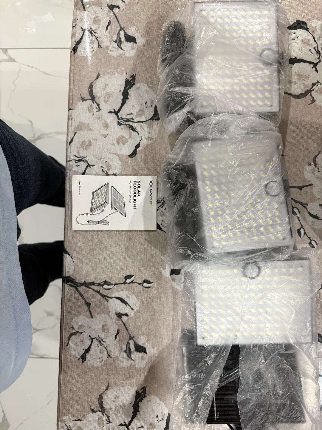 Selling a brand new 3-pack of Aokcerled solar flood lights! These lights feature 113 lens-focused LEDs for brighter and longer-lasting illumination. They also have a sensitive motion sensor with a 120° detection angle, perfect for outdoor security lighting. The convex lens concentrates light for a longer distance, and they come with a plastic cover. Installation height is recommended at 6-9ft.