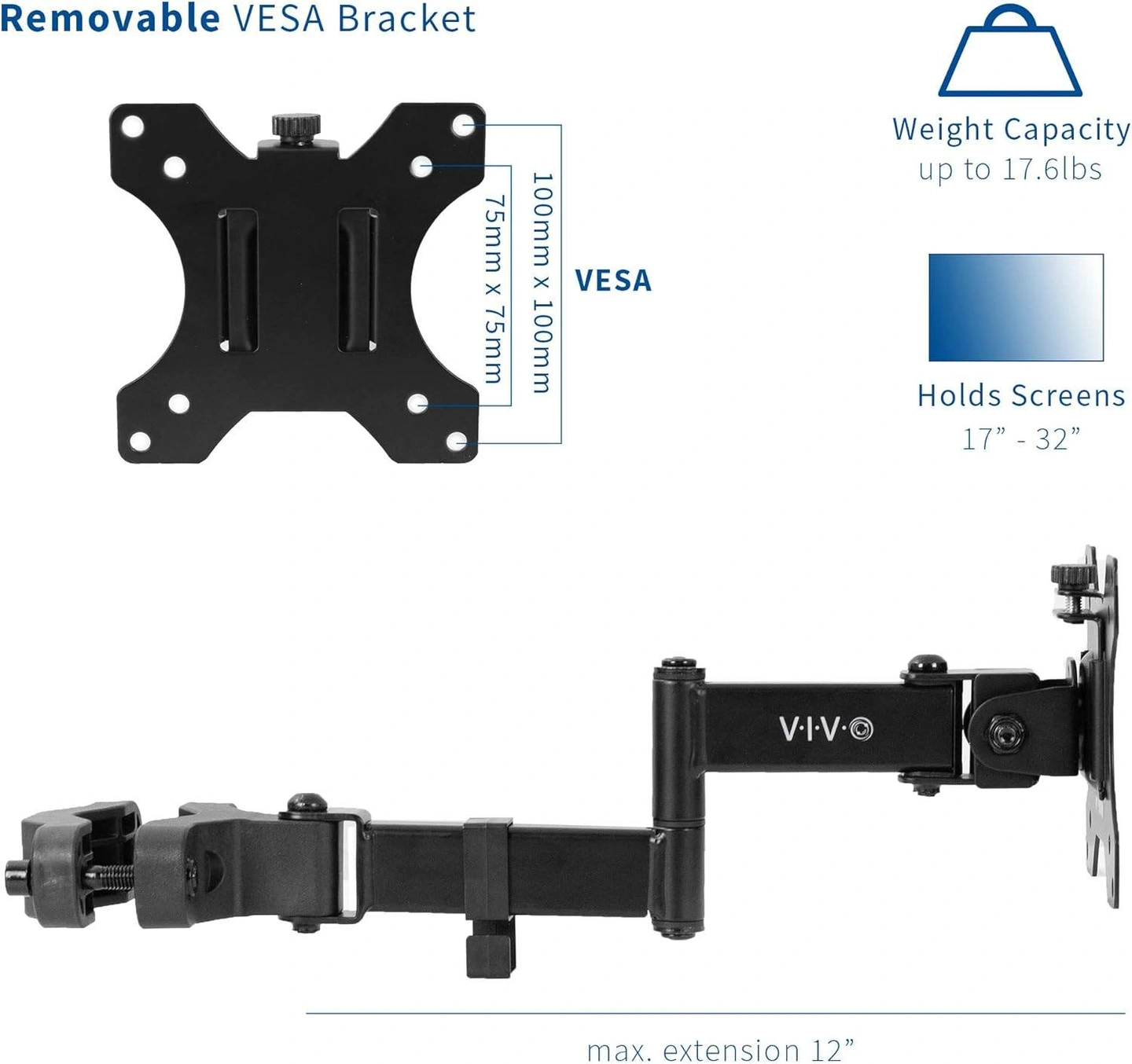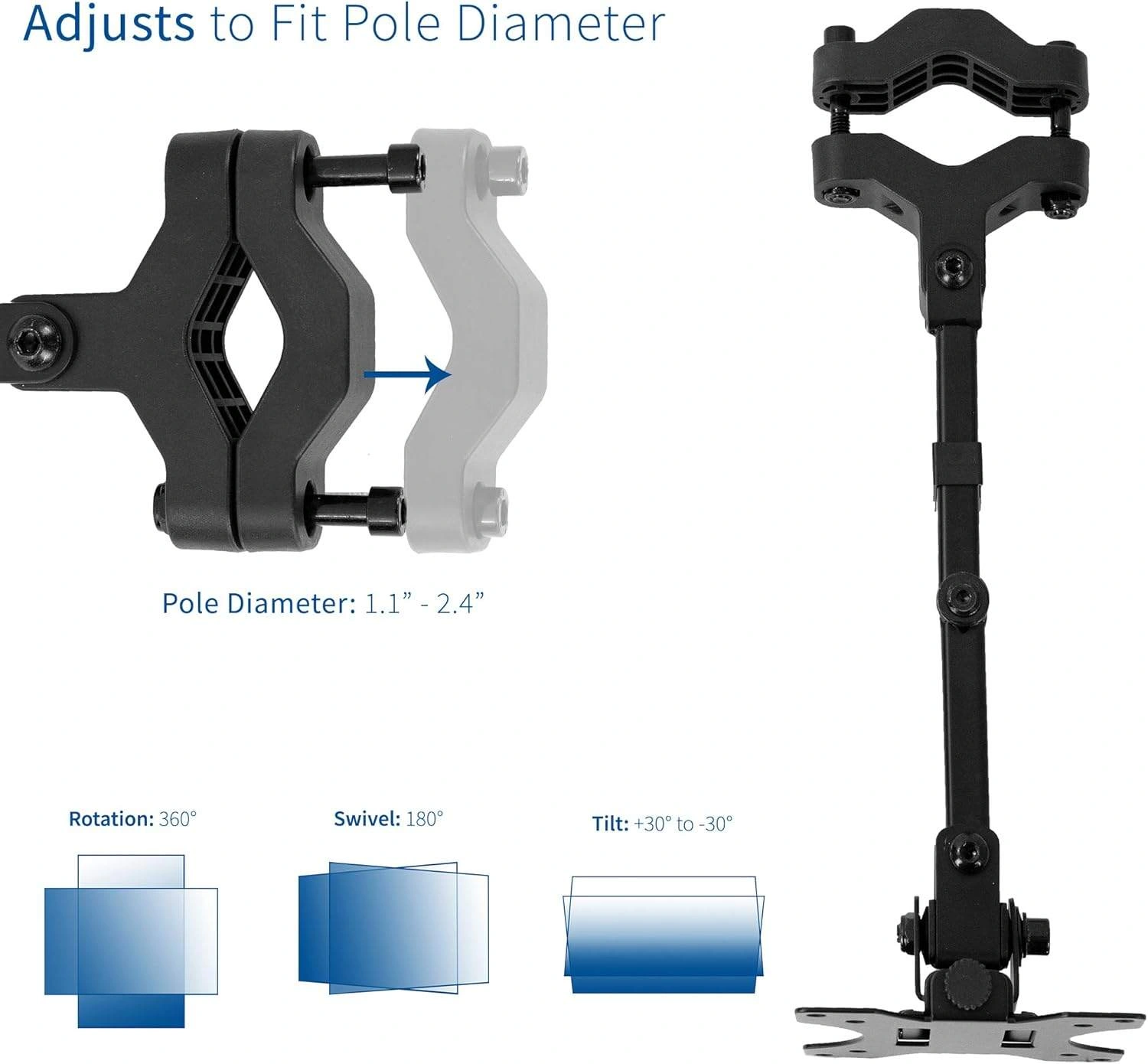 New VIVO Full Motion Pole Mount Monitor Arm with Removable Plate