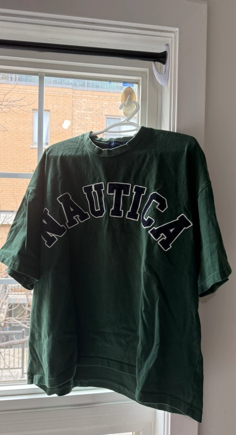 Selling a pre-owned Nautica T-shirt in green. It's in great shape and ready for a new wardrobe!